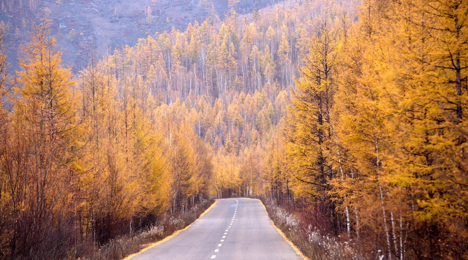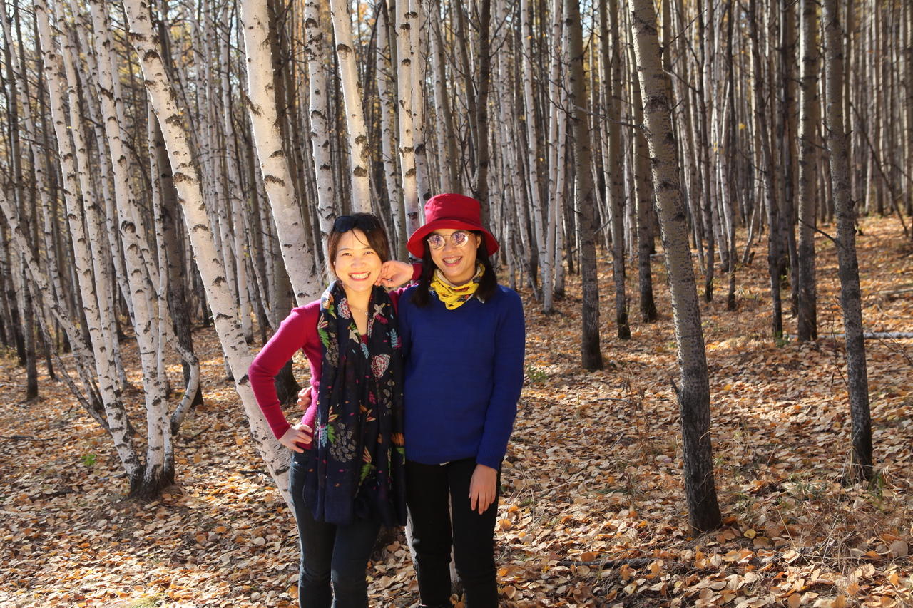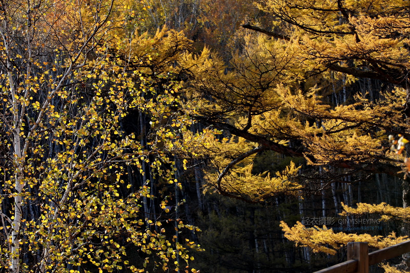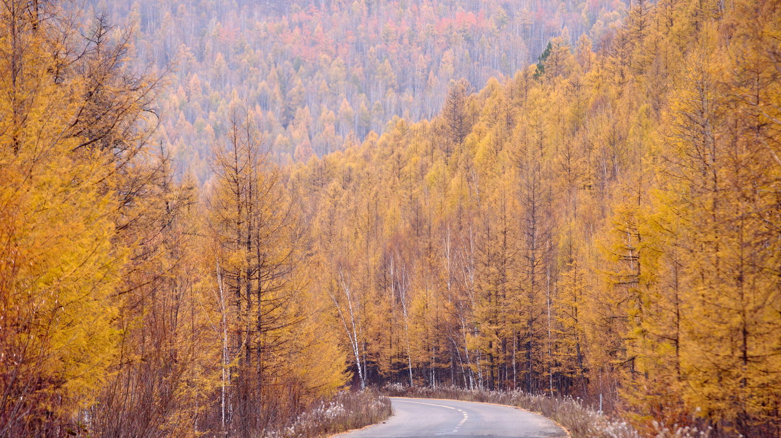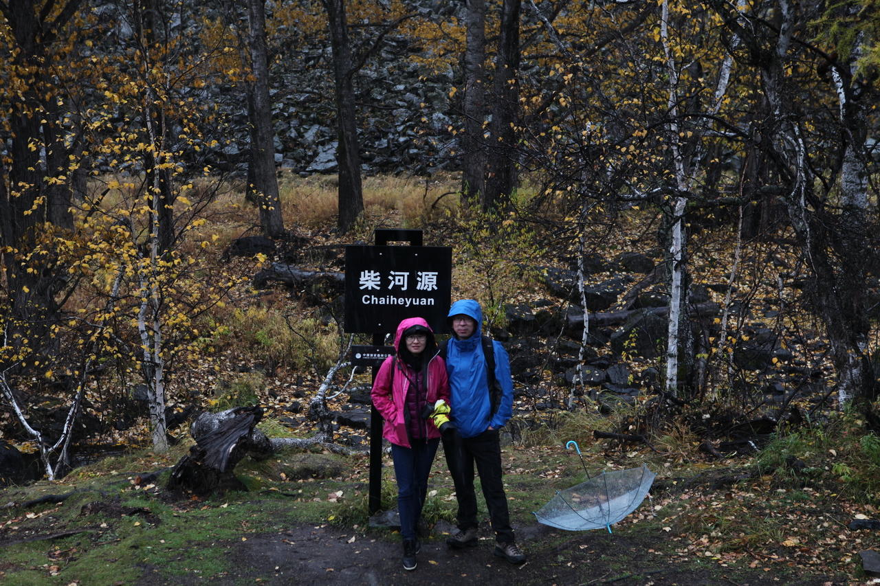 出了莫尔道嘎小镇不久,就有一条废弃的弯弯的铁轨,大家大呼停车,于是焦师傅将车停在安全处,大家下来各种造型各种姿势拍拍拍。今天的天气预报是小雨,一路阴天,继续前行时,却偶见几点雨点飘落在前挡风玻璃上,心里暗自叫苦,没有光的白鹿岛,色彩便会逊色很多的。路上两旁风光旖旎,金黄的落叶松和白桦树交相争艳,迎风招展,让人目不暇接,还是一样的狭窄山路,不适合停车,只能车上拍一拍。