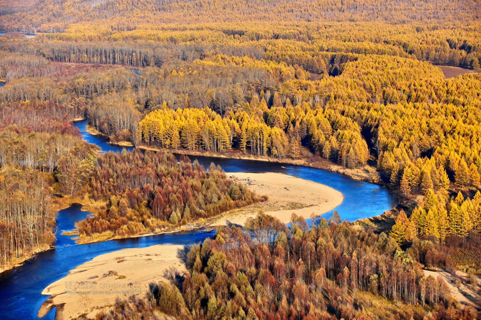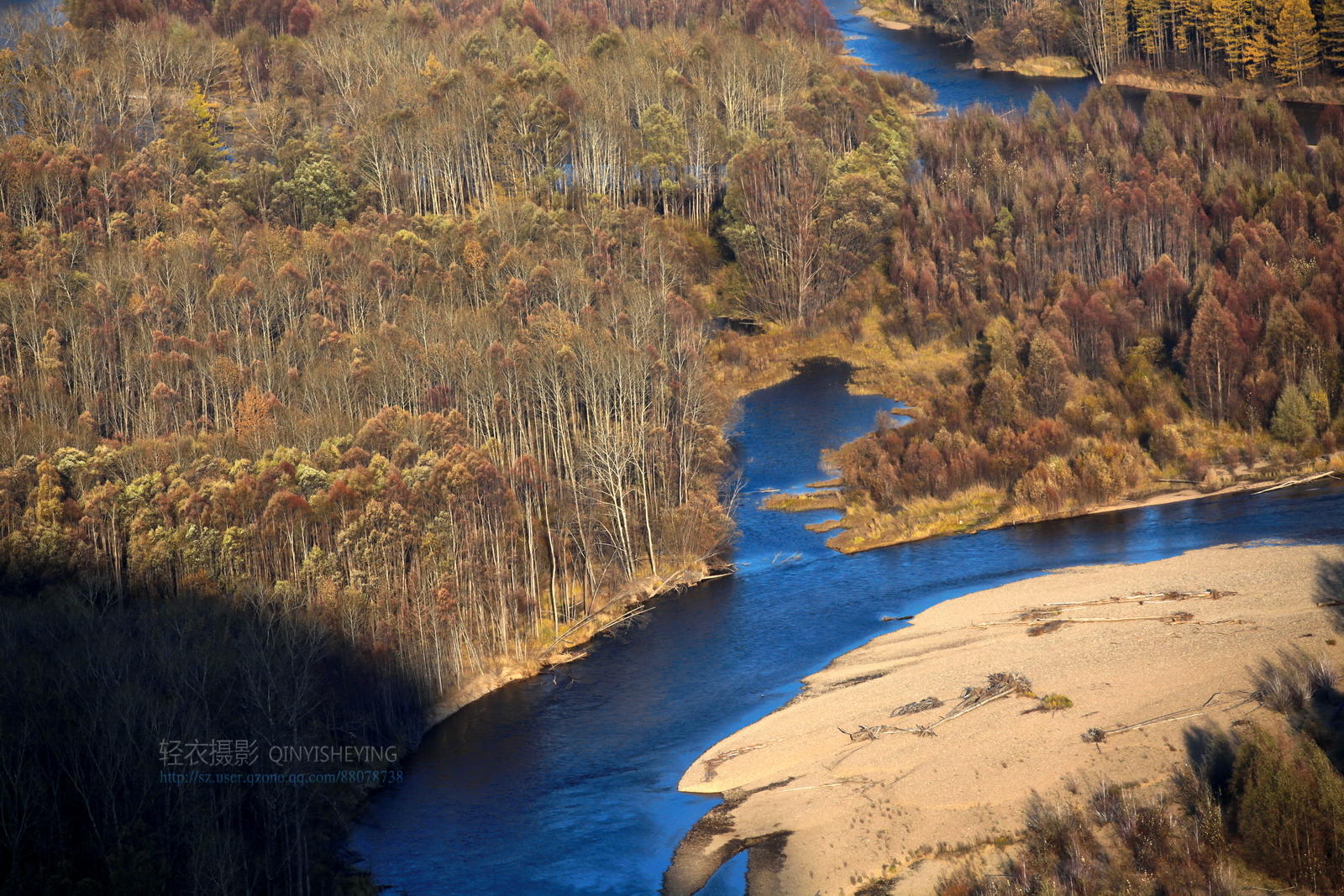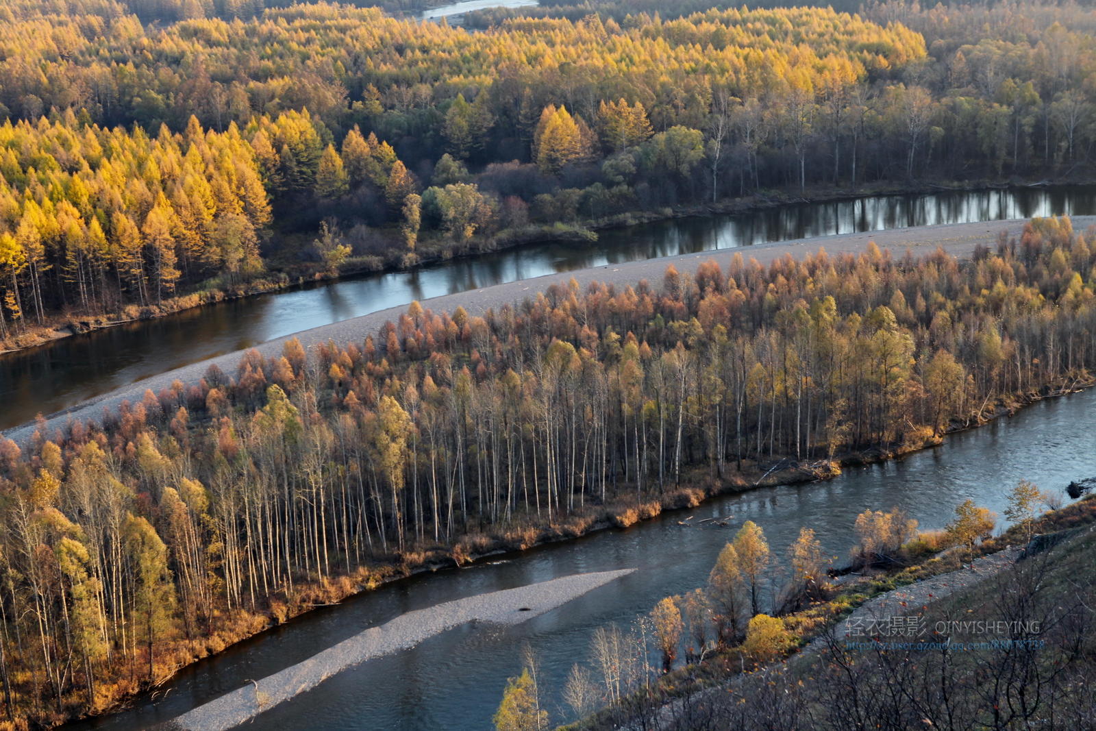 河里到处都是枯树根,应该是喜欢拍慢门的摄影师们的最爱,沿木栈道上行,三个观景台,俯瞰大兴安林壮美无比的落叶林秋色,应该是每一位游侠此生最为震撼的时刻。只是我不明白为何如此大好秋色游人罕至呢?大概都一窝蜂的去了北疆和额济纳了吧?