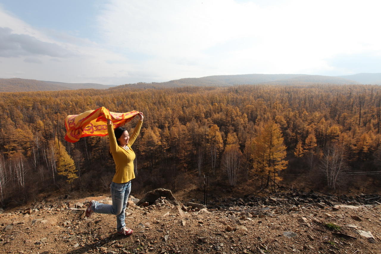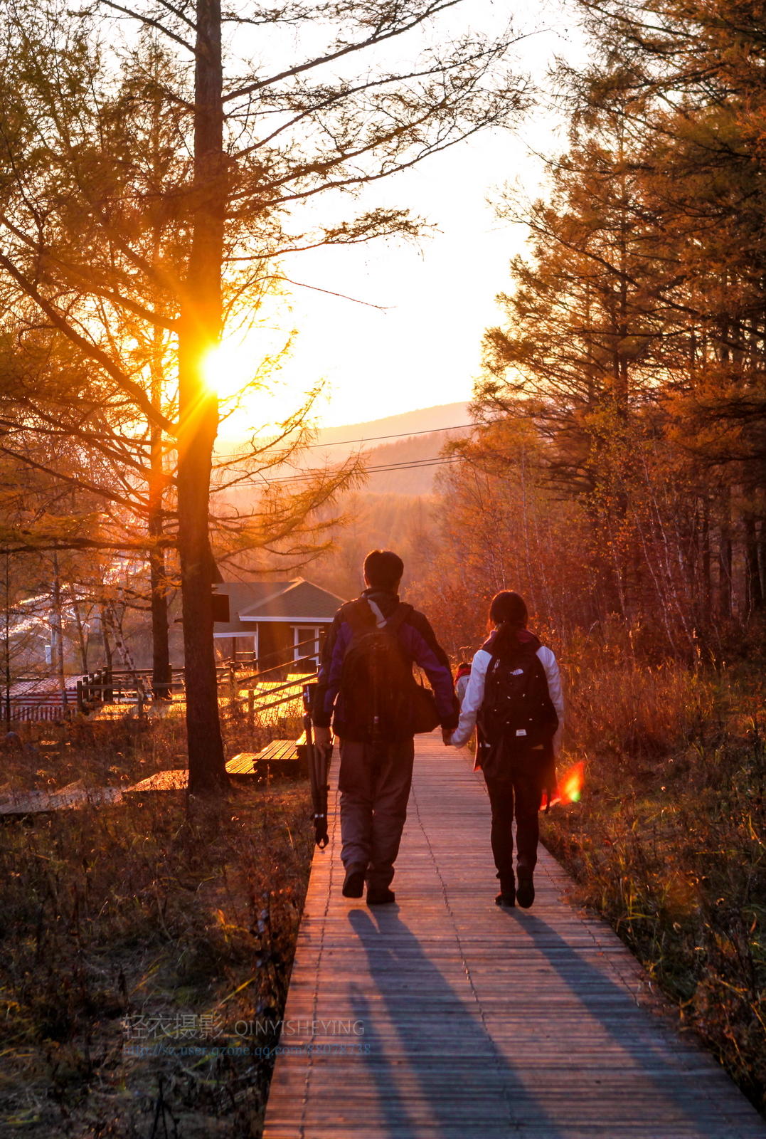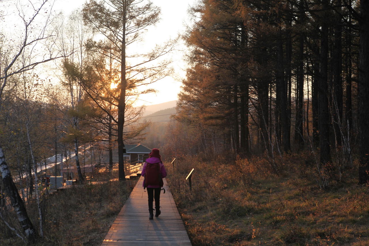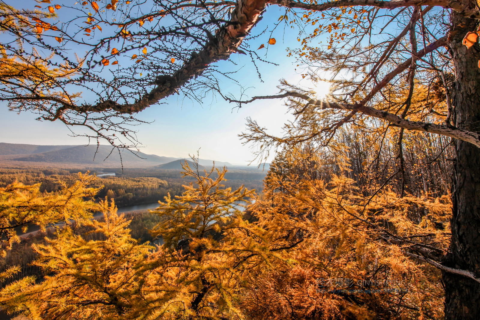 河里到处都是枯树根,应该是喜欢拍慢门的摄影师们的最爱,沿木栈道上行,三个观景台,俯瞰大兴安林壮美无比的落叶林秋色,应该是每一位游侠此生最为震撼的时刻。只是我不明白为何如此大好秋色游人罕至呢?大概都一窝蜂的去了北疆和额济纳了吧?