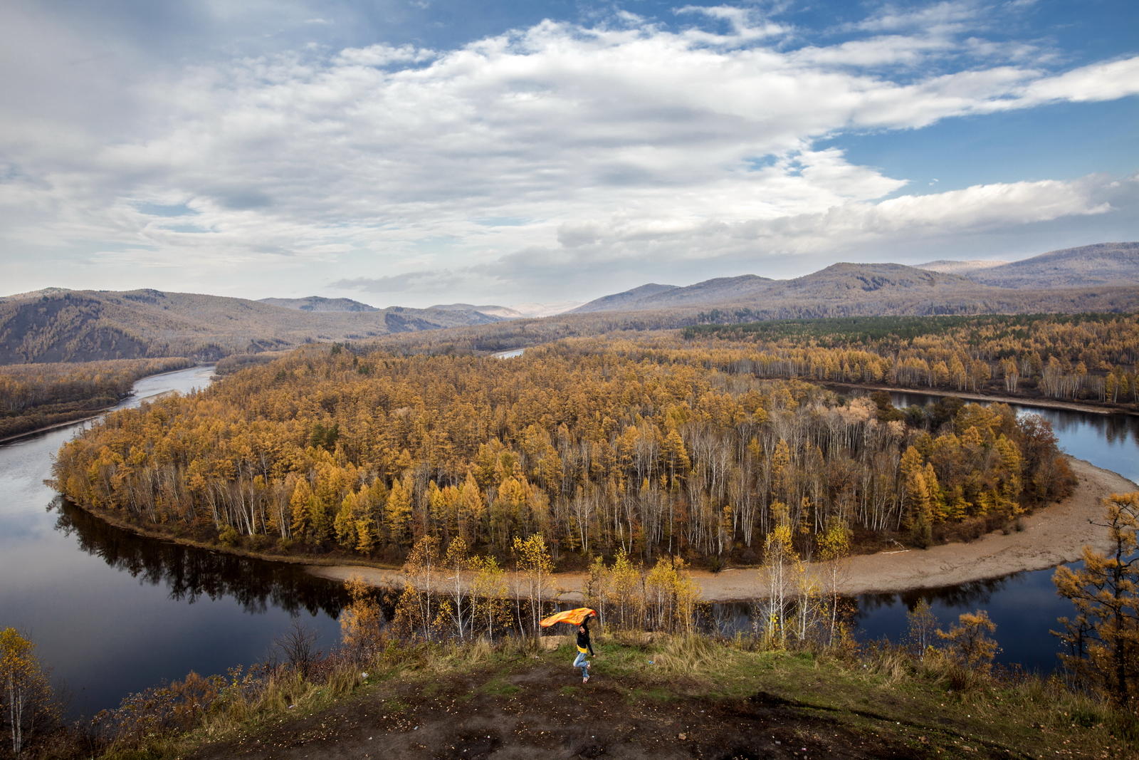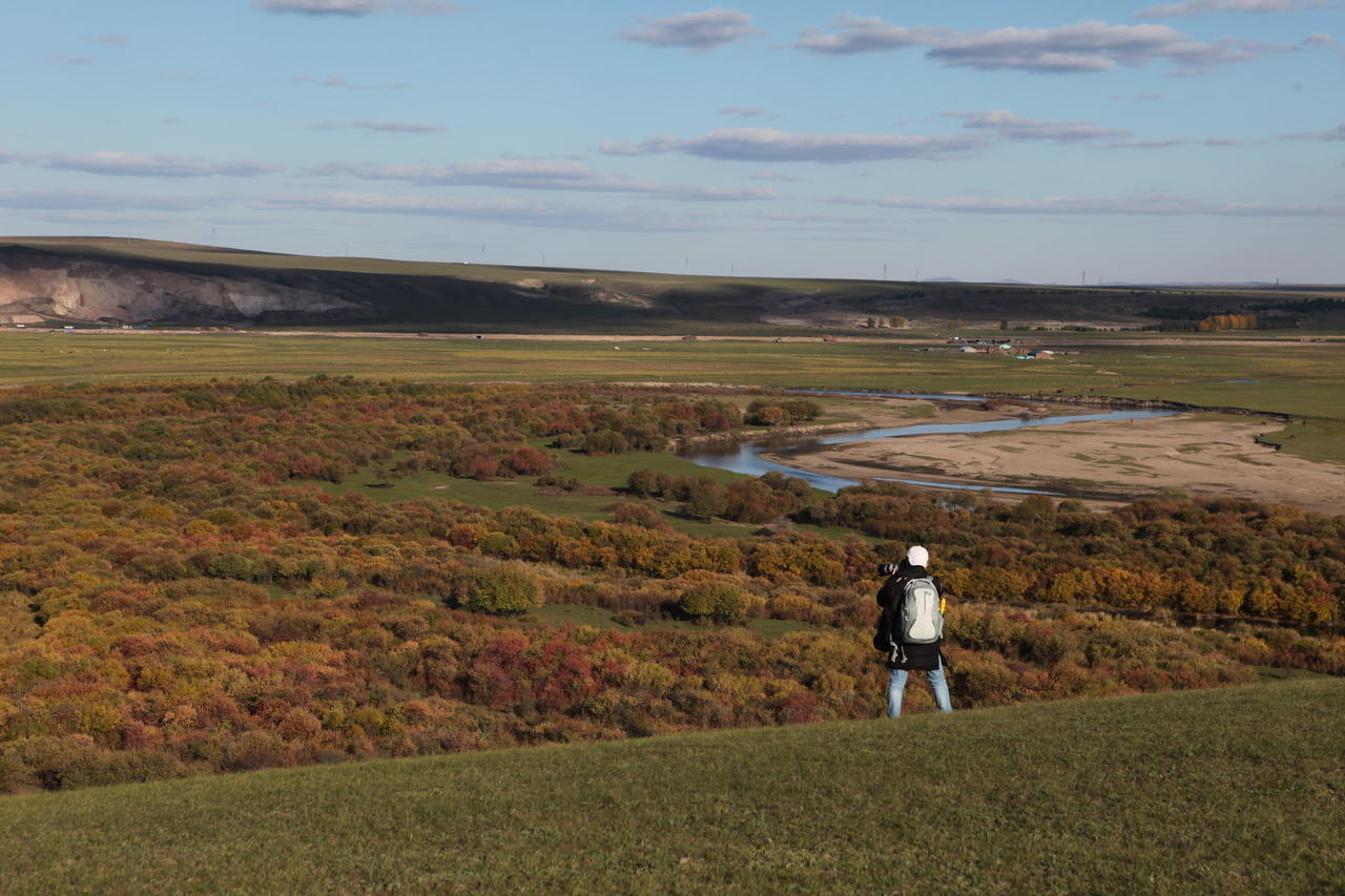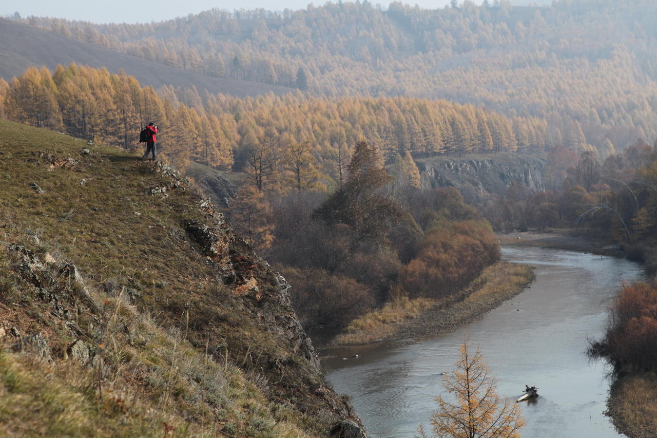 一大早早起,早餐打包路上吃,我们的团队游侠们都很给力,说好的集结时间基本上都能准时到达,加上师傅给力,所以我们一路都能提前到达目的地。到达金帐汗的莫日格勒河后,自由活动拍摄一个小时后收队,这里地势比较平,除了航拍,一般很难拍出线条优美的莫日格勒河的景象,所以这只能算今天行程中的开胃甜点了。