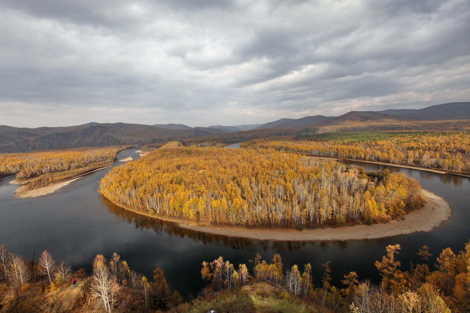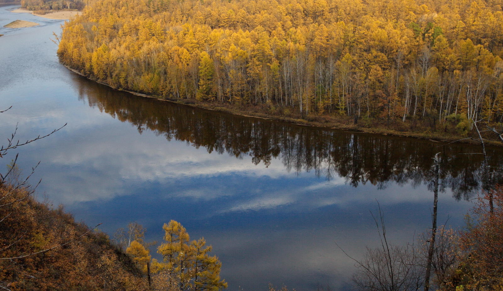 激流河注入额尔古纳河入河口上游处,有两个修长小岛相偎而卧,河水呈"S"形回环于两个小岛之间,岛上野花丛生,红豆遍地,松黛桦橙,山光水色,美不胜收,这就是为当地百姓讲述着许多传说的苍狼、白鹿岛。