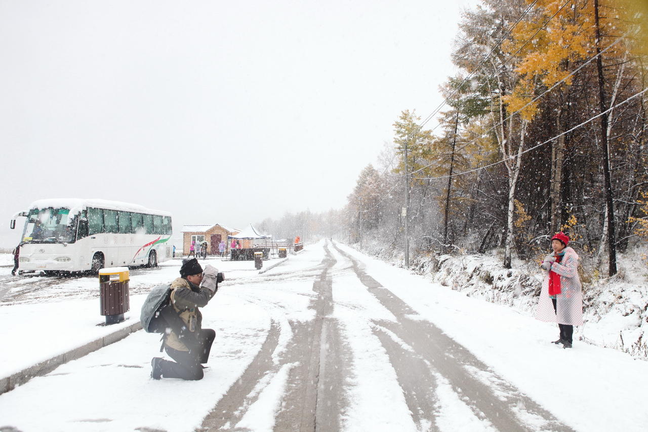 9.27我们有幸看到大雪纷飞的阿尔山,在冰天雪地的童话世界里我们的车在疾驰。请点击视频看我们的全体队员
