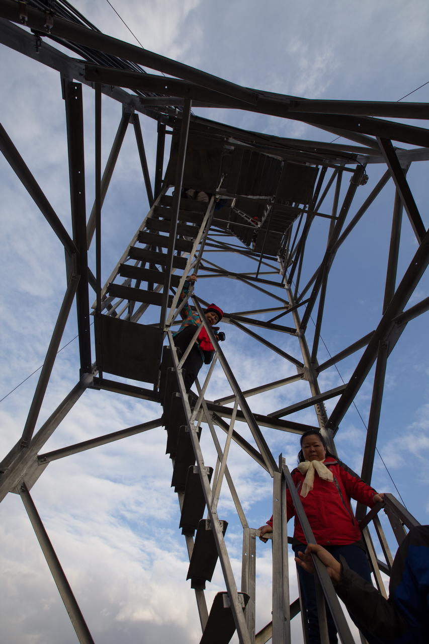 下午3点不到,我们就到了白鹿岛观景台,观景台的俯拍角度不错,不过更好的角度却是那高高的瞭望台,铁架子台阶往上爬的时候,心都有点微微颤抖的,更可怕的是,到顶的时候有一块踏板是空的,俯瞰下来头晕目眩!不过我们勇敢的大师们,都一个个爬了上去,并不肯下来。那个谁,下来的时候用的是屁股功,一步一步的挪下来的,嘴里念念有词:我恐高、我恐高... ... 苍狼白鹿岛不仅风景独特,也大有来头: