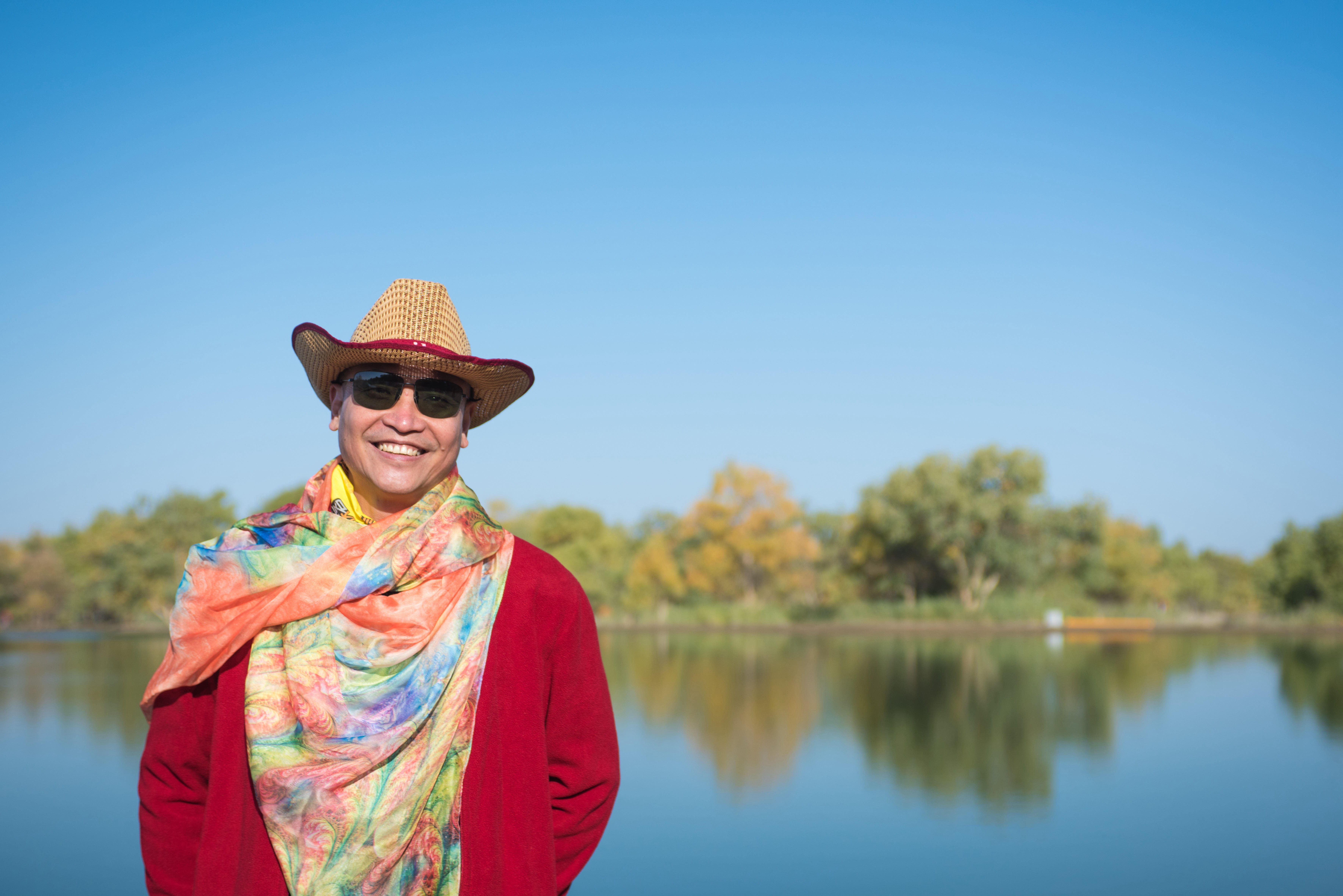 这里的胡杨一片金黄,加上碧水蓝天相衬,到处都是入画的美景。