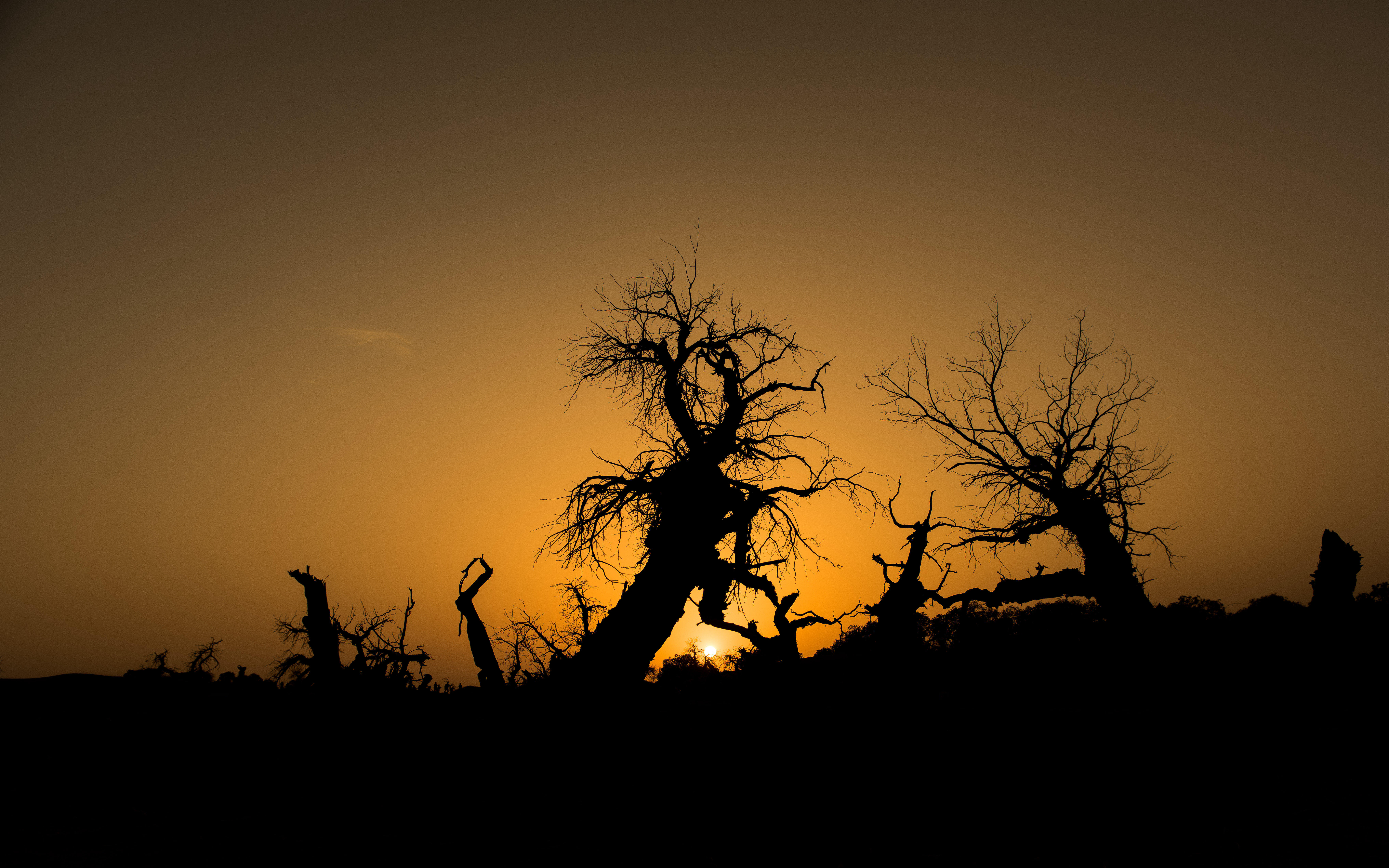 在如血夕阳的映衬下胡杨魔鬼般的身姿,绝对令人印象深刻。