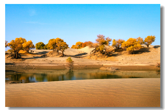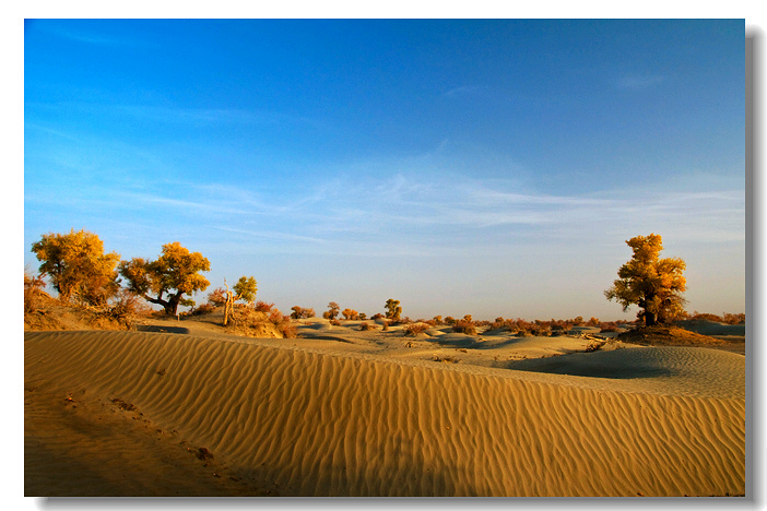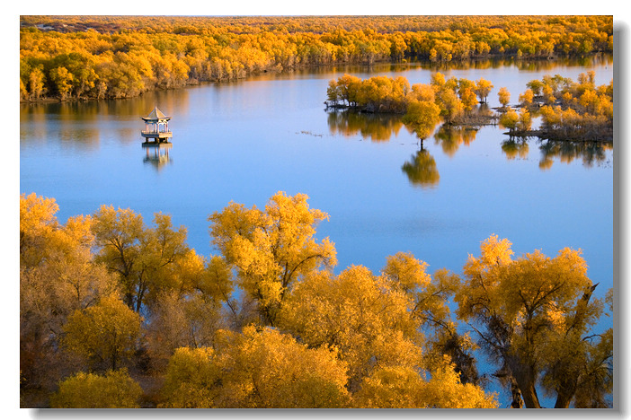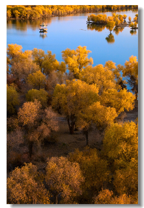 轮台县地处天山南麓、塔里木盆地北缘,这里有世界上面积最大、分布最密、存活最好的“第三纪活化石”——40余万亩的天然胡杨林。 胡杨,维吾尔语叫“托克拉克”,意为“最美丽的树”。由于它顽强的生命力,以及惊人的抗干旱、御风沙、耐盐碱的能力,人们又叫它“沙漠英雄树”。 面对胡杨林,人类的想象力一直失语。在民间,人们将它英雄化:生而一千年不倒,倒而一千年不死,死而一千年不朽。