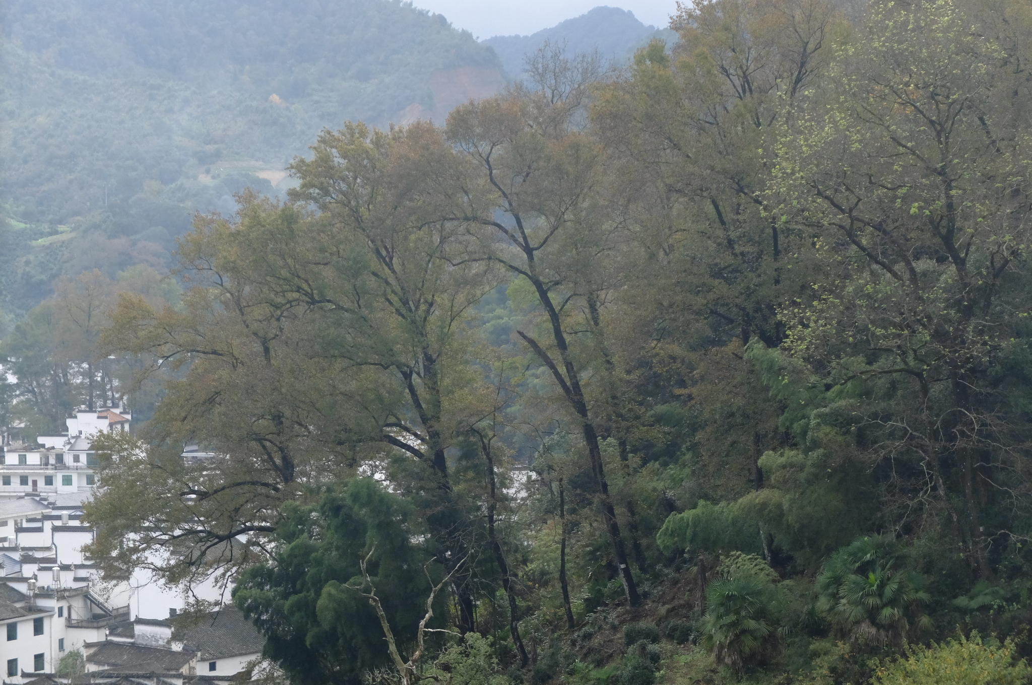 为了在天黑之前赶到塔川拍摄日落,我们加足了马力一路飞奔,除了吃饭唱歌,就只停留了一下蓝田的北拱桥,拍摄一下菊花和廊桥,虽然那里已是菊花残、廊桥烂,但是大家还是蛮开心的!到了塔川,我们走后门匆匆从出口进了塔川,跟上周比起来,乌桕和红枫红了一些,然而......天空开始下起来了小雨。于是我们就开始了“天青色等烟雨,而我在捉急”感伤之旅!