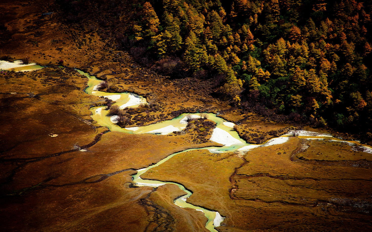 神奇的光线,无垠的草原,弯弯的小溪,金黄的柏杨,山峦连绵起伏,藏寨散落其间,牛羊安详地吃草... ... 川西的平原风光美丽地绽放。这,就是新都桥,令人神往的"光与影的世界"、"摄影家的天堂"。