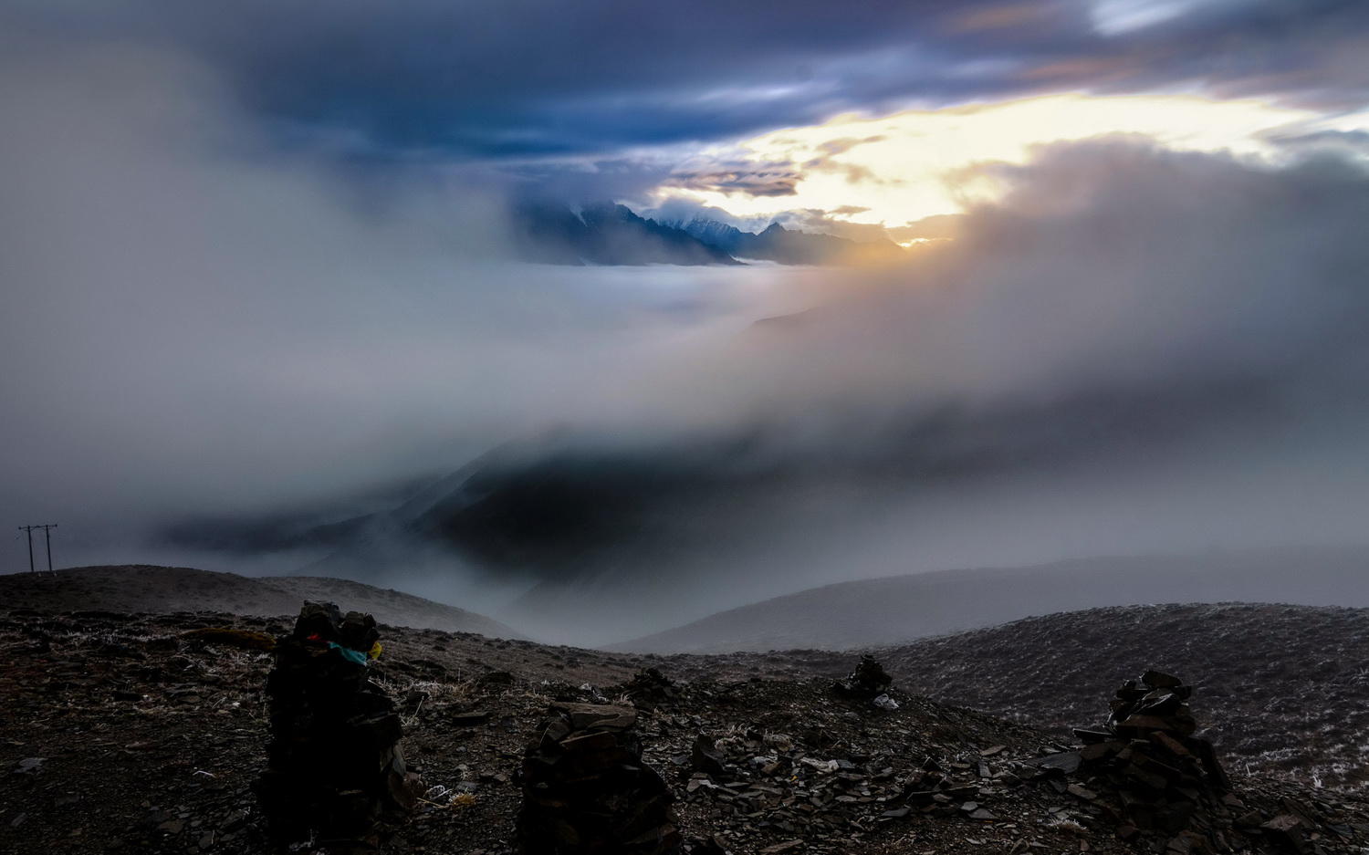 子梅垭口是观贡嘎的最佳观景点之一,可惜当天天气不好,大雾弥漫,未能见到贡嘎全貌。我们一行在垭口苦等几个小时,雾气始终不得散,最终无奈下撤。留下了几分遗憾。