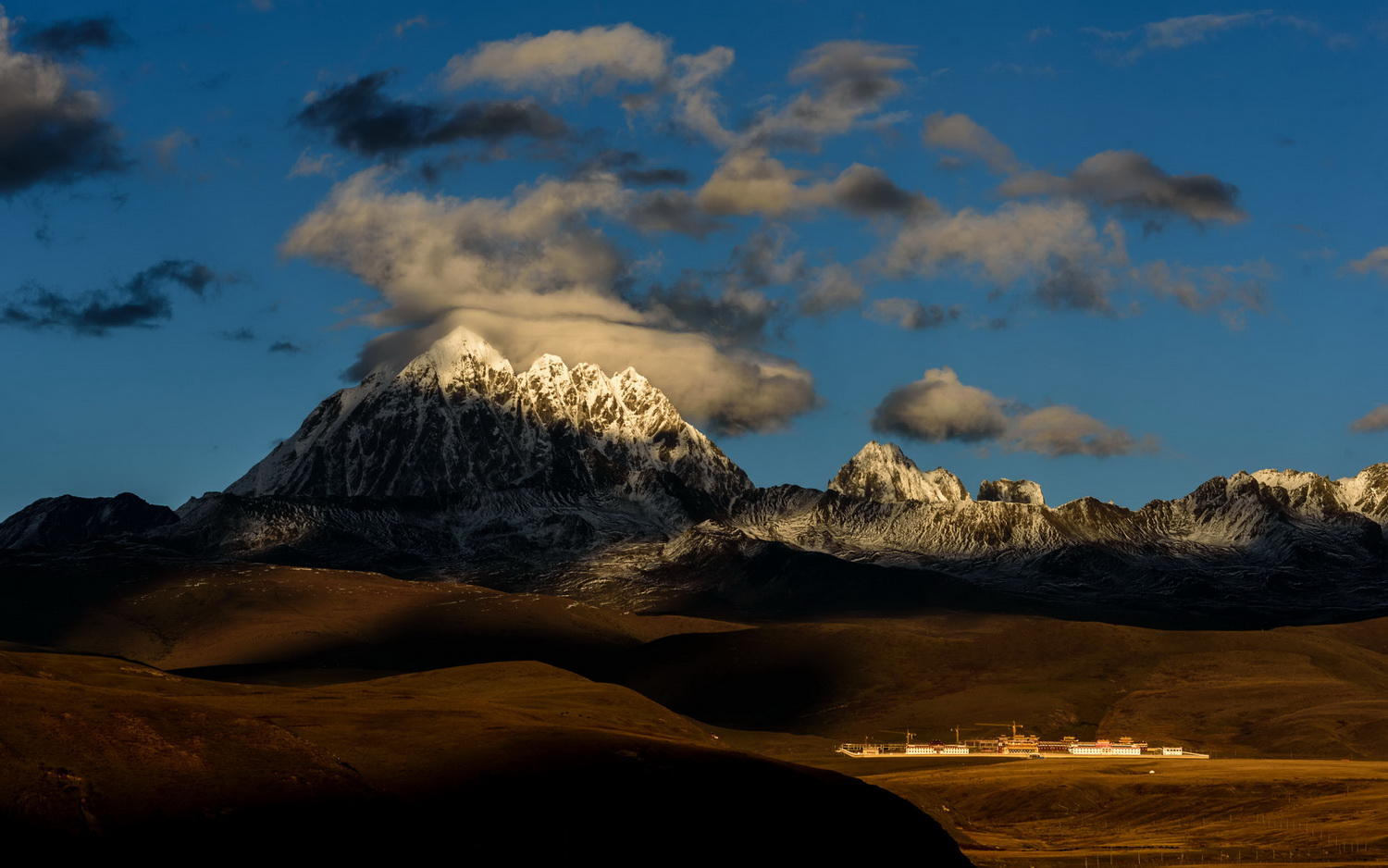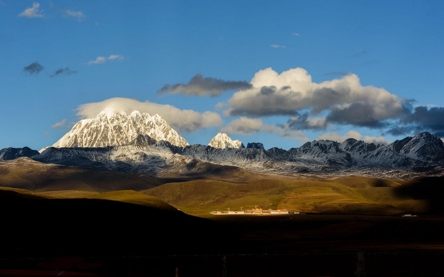 我们在塔公草原上等待日落,看光影斑驳。金塔与雪山交相辉映,时而藏于阴影之下,时而闪耀与阳光之中。