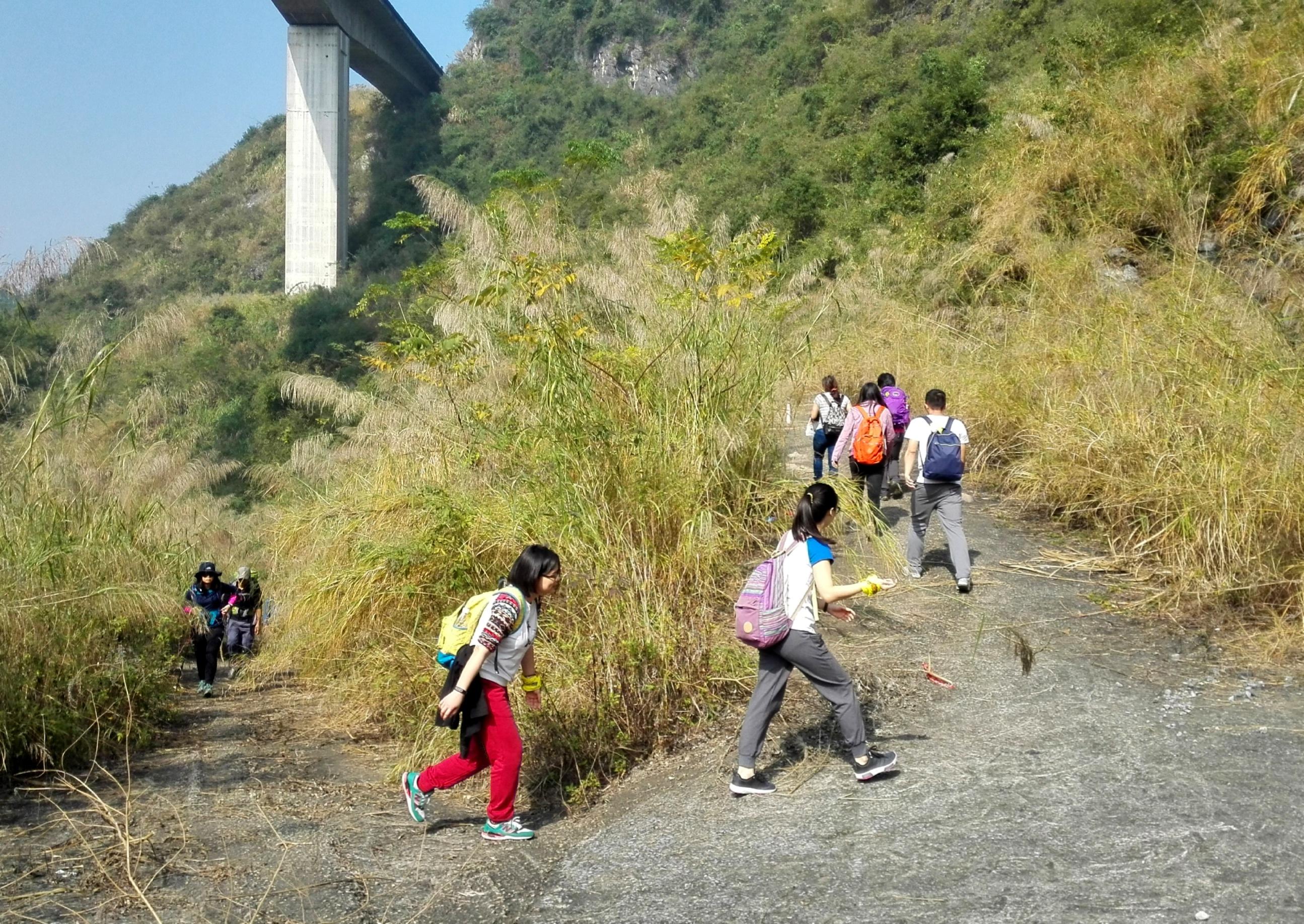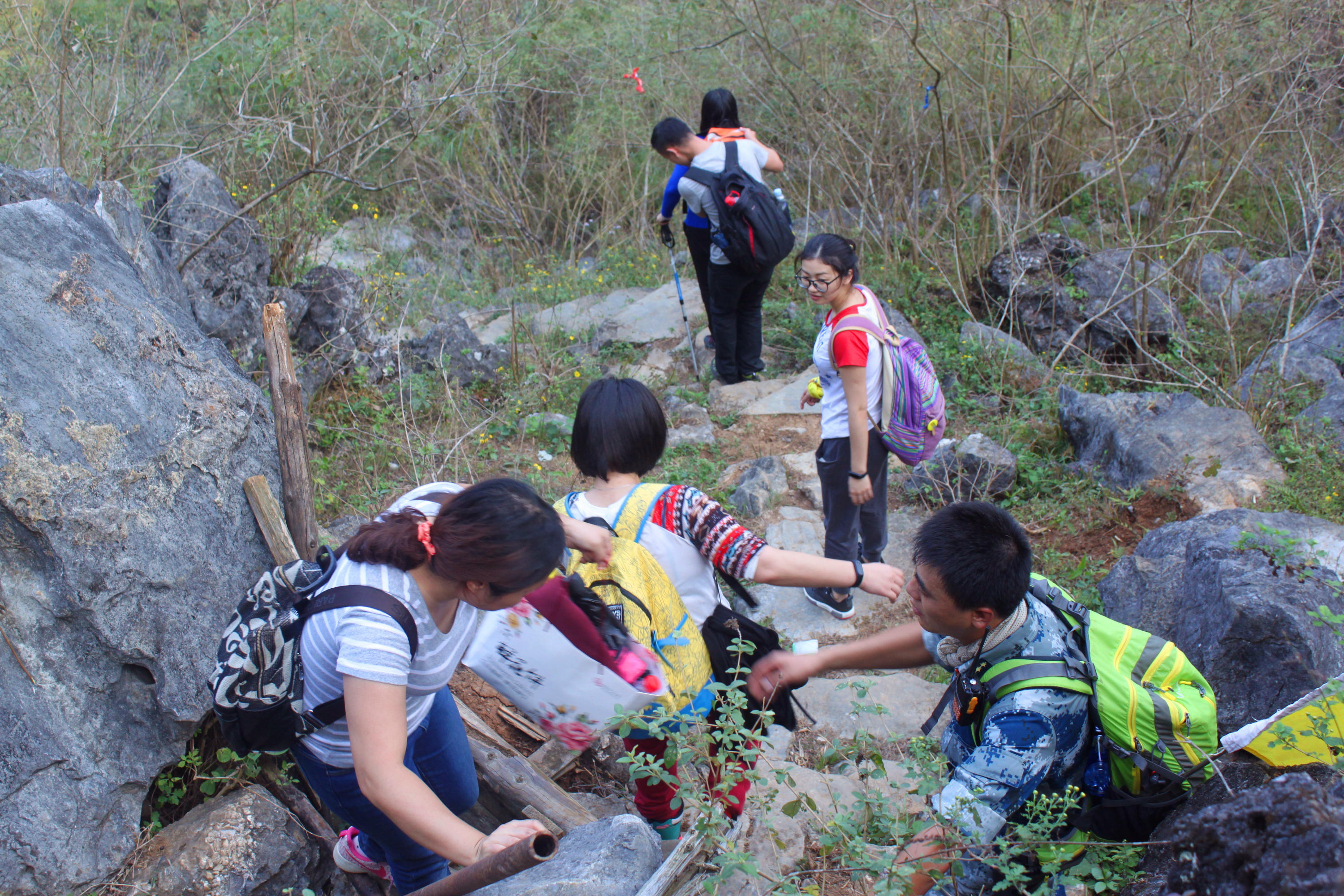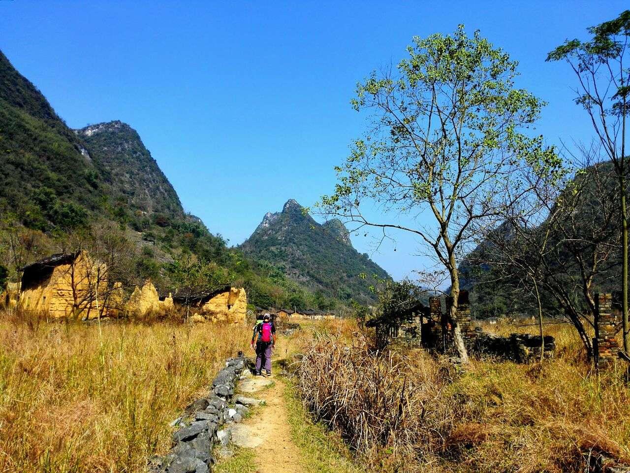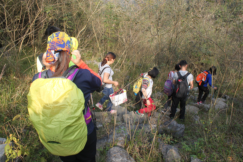 踏着崎岖的山路前行