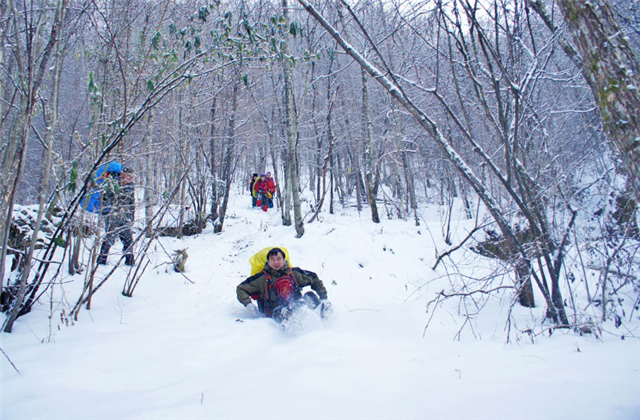 冬季的神农架无人区,银装素裹,白雪皑皑,吸引大量的徒步爱好者来此露营徒步。