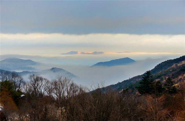 每当冬季,山顶皆为冰雪覆盖,山腰又常云雾缭绕,恰如银须白发的老君仙翁端坐云中。