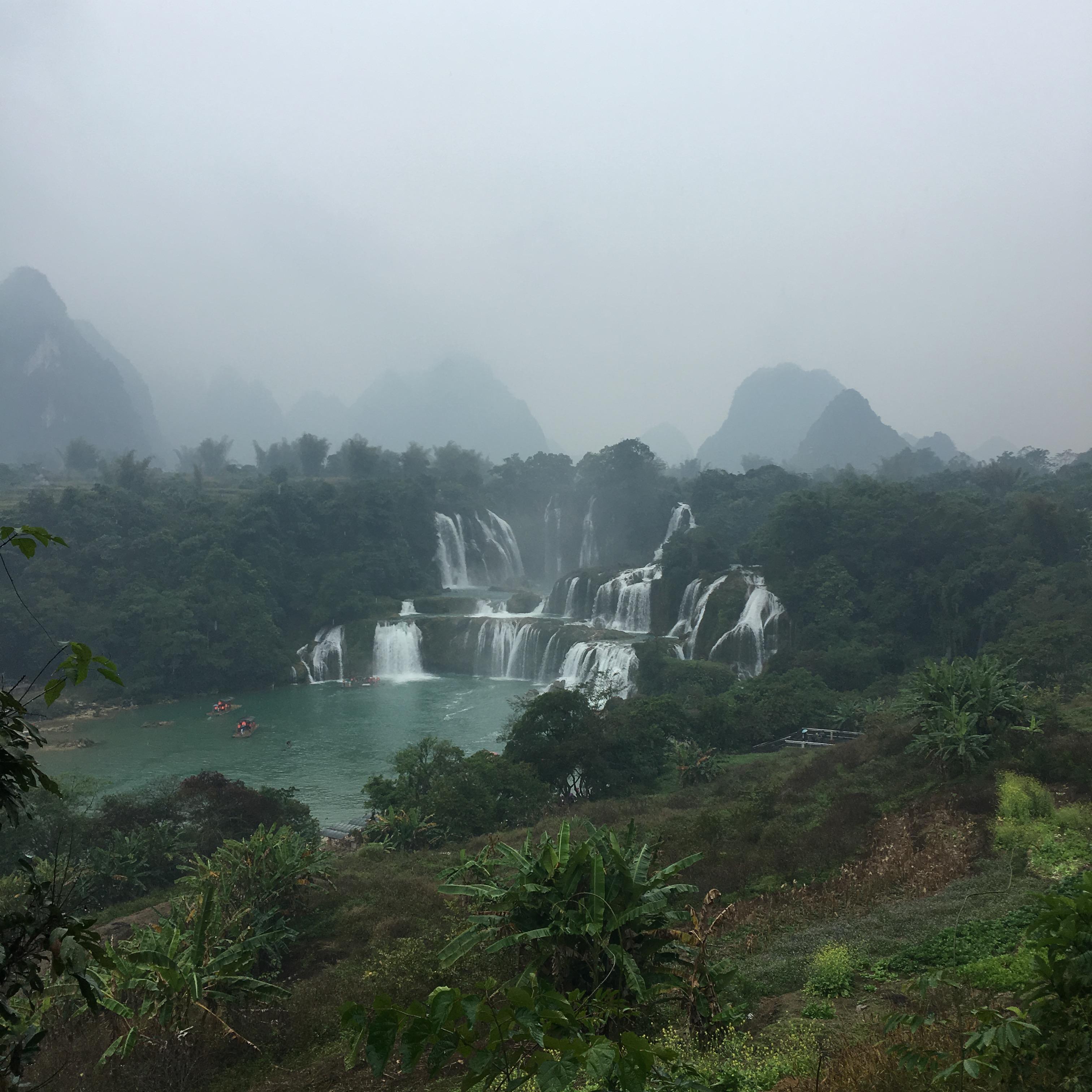 刚到德天瀑布,就下起了毛毛细雨,据说在广西有这样一种说法,有贵客来,天就会下雨,看来,我们都是这边的贵客呢!老天在新的一天太激动热烈的欢迎我们呢