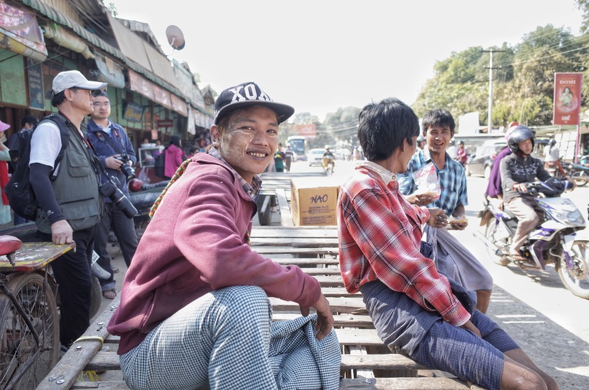 蒲甘骑行人文小组和我们一起出发深入当地村庄拍摄