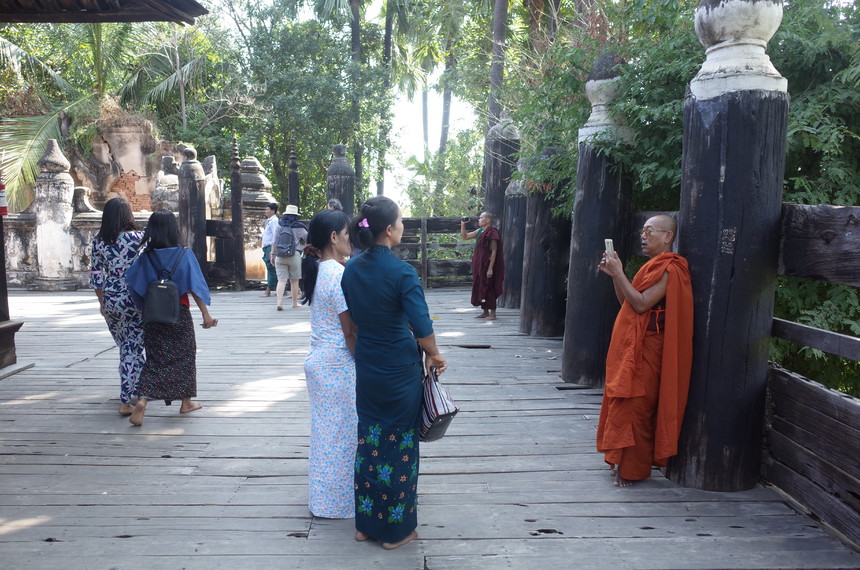 游侠客团友在蒲甘许三多佛塔和当地比丘合影