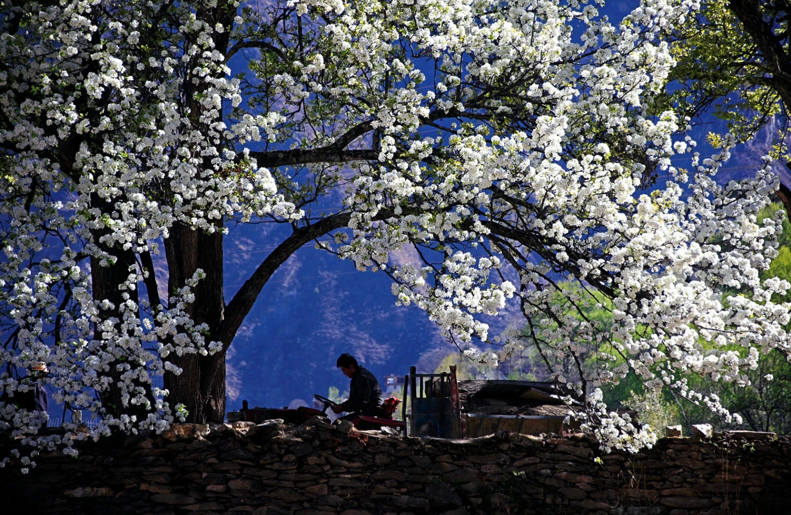 三月,漫山遍野的梨花相继在中路藏寨盛开。