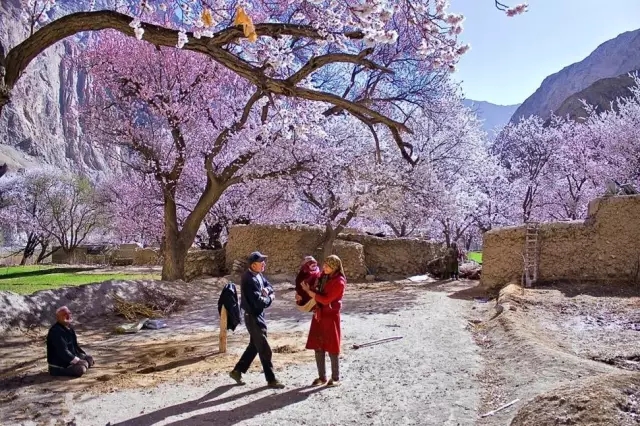 这里生活的大都是塔吉克民族,他们生活方式简单纯朴,大方好客。远远地看见村庄盛开的粉色杏花,围绕在塔吉克人的房