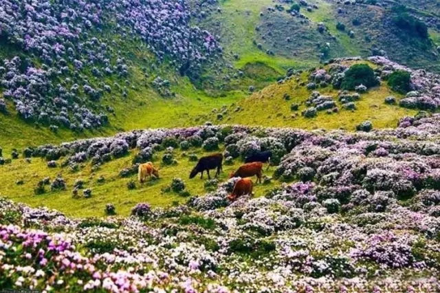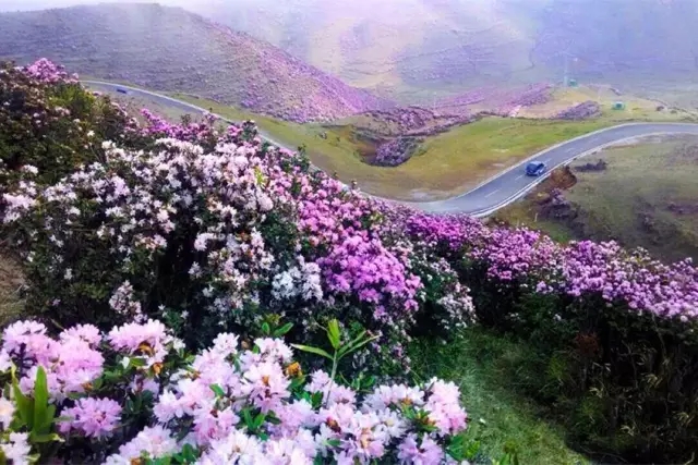 乌蒙大草原海拔2500米,是贵州最高、最大的草场。这里有着20万亩高山杜鹃,盛放时草场变为了花海,游人仿佛徜徉在花