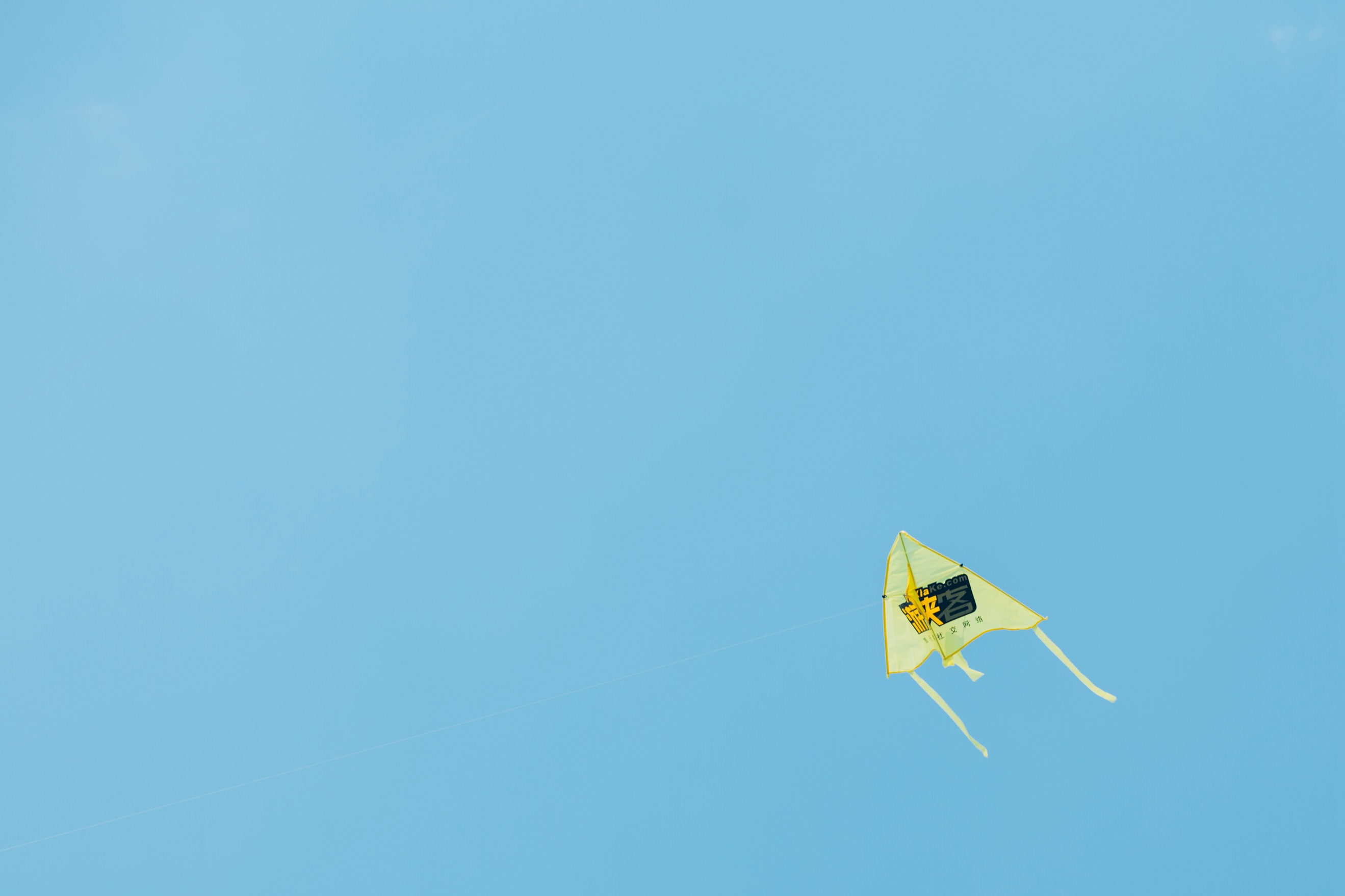 看着黄色的风筝飘在空中有着满满的成就感