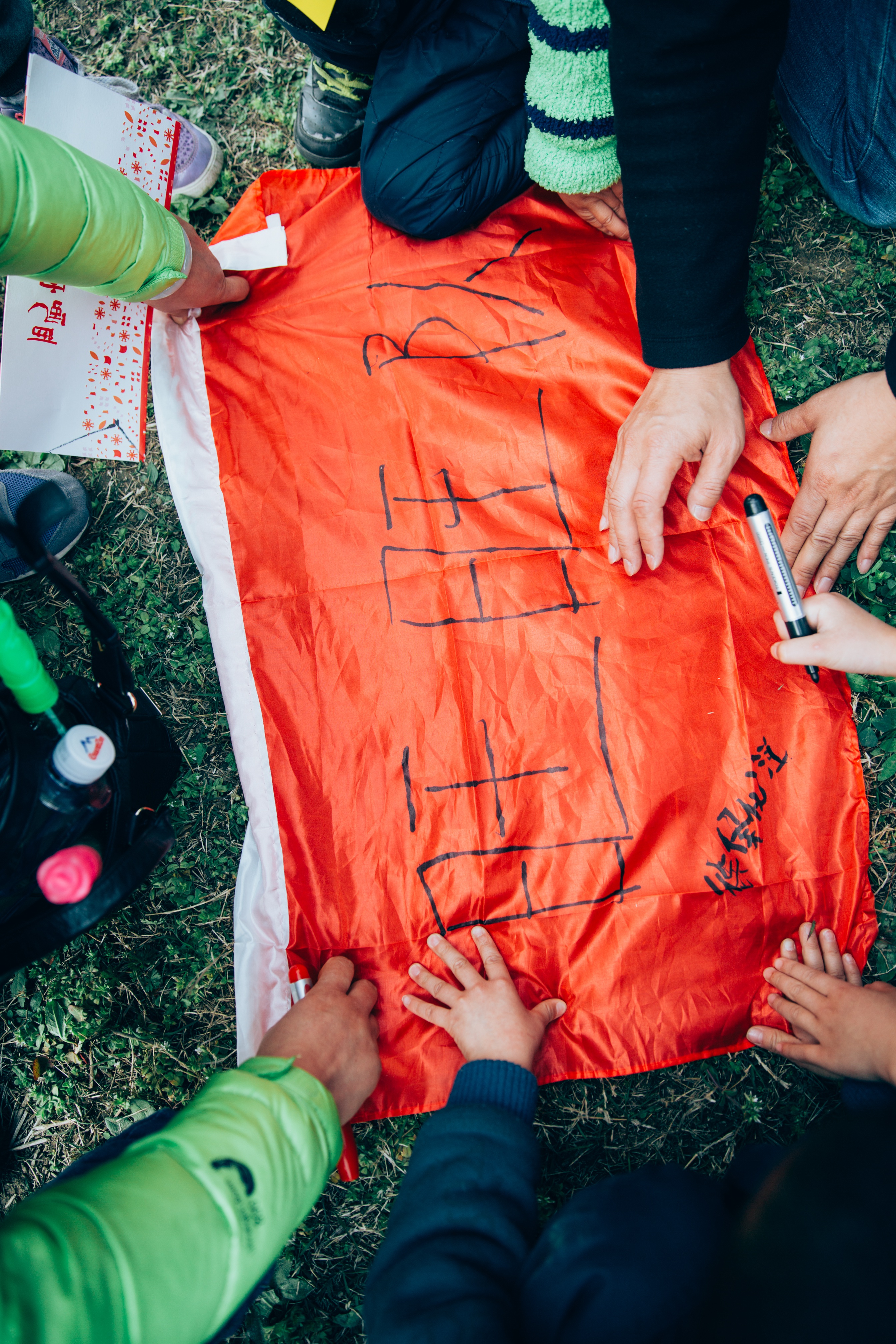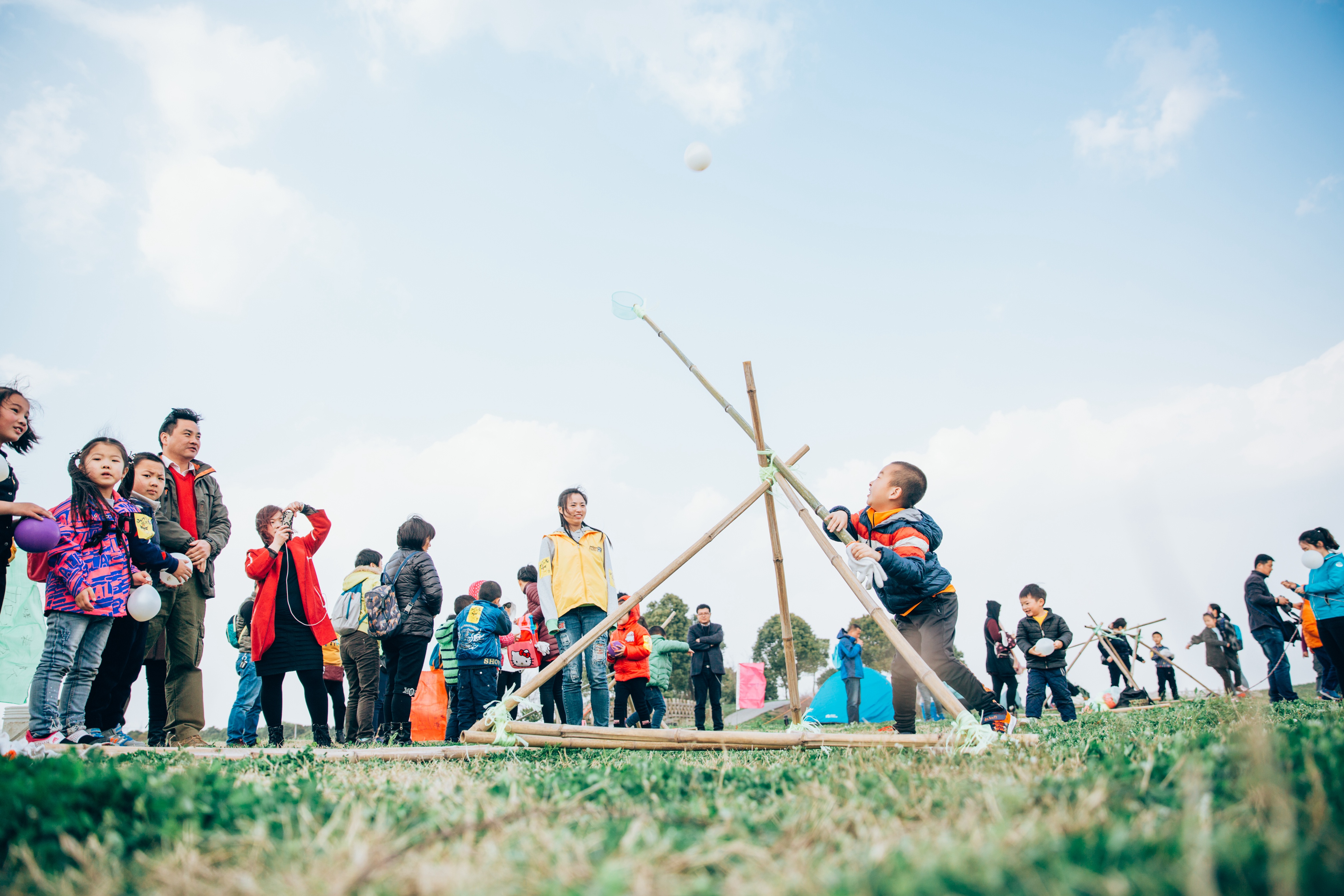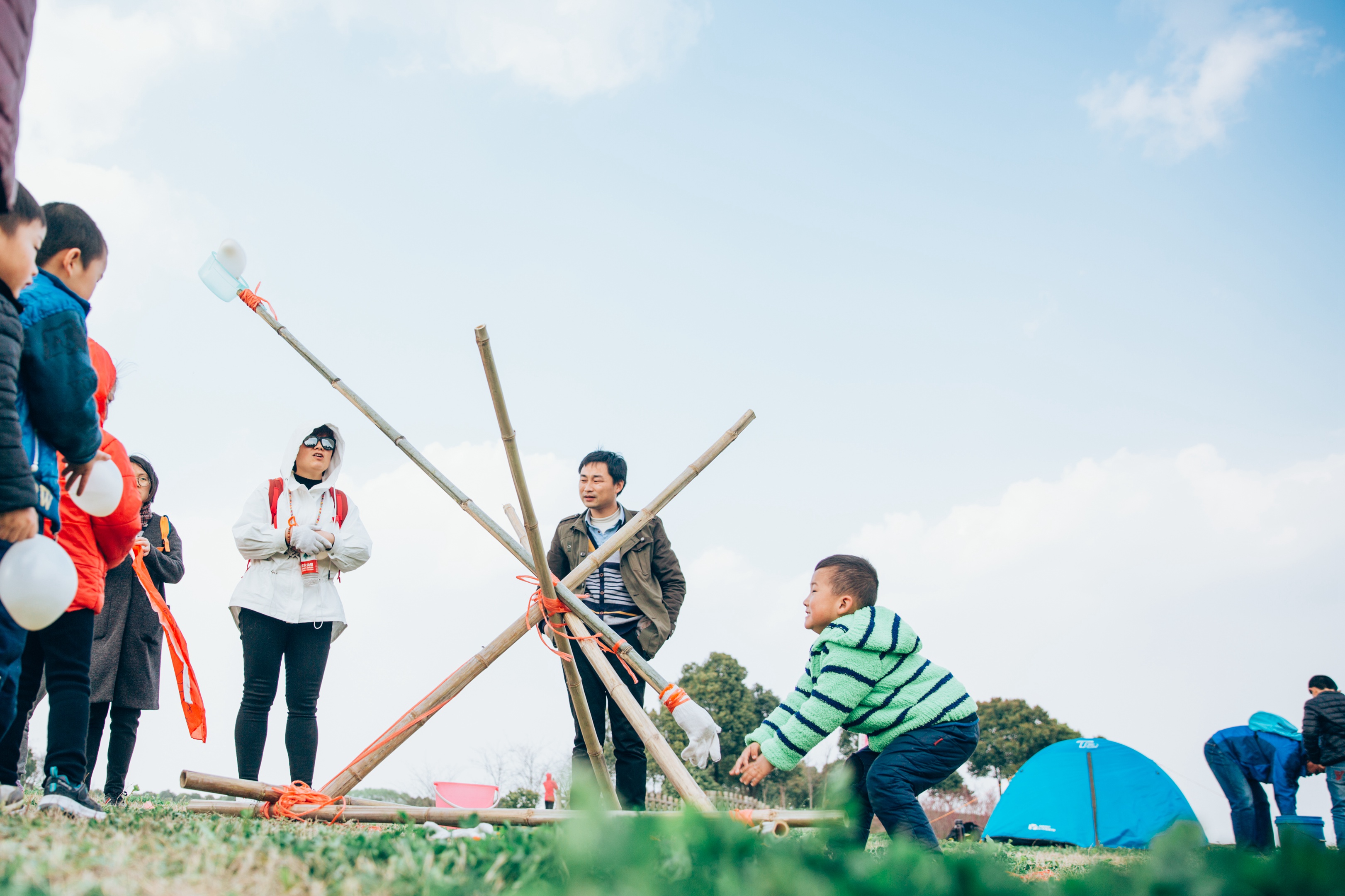 一起捆绑竹竿的小伙伴