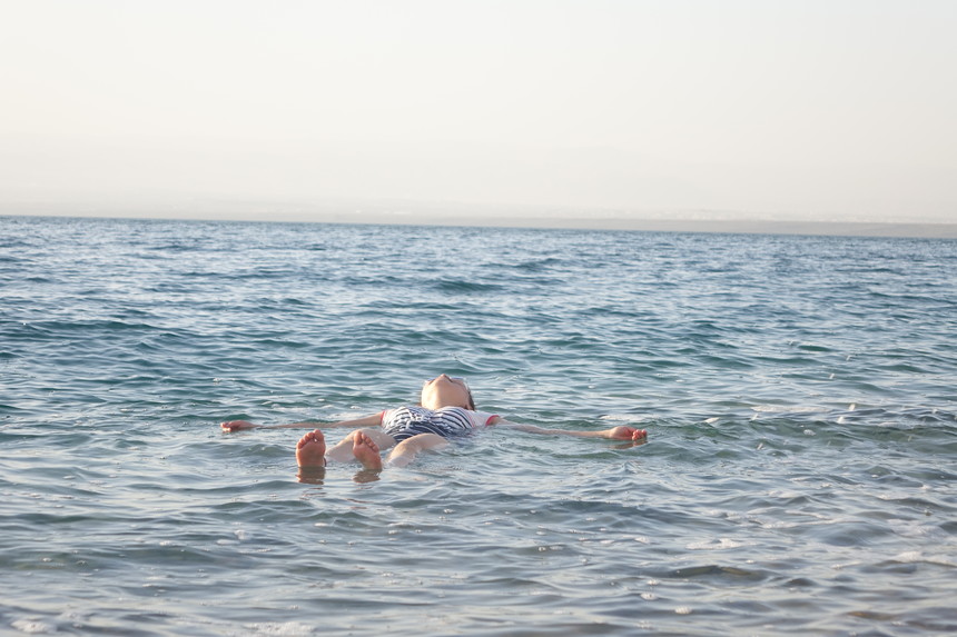 死海,因为海水中盐分比重太大,水里没有任何生物,故称之为死海。在海里唯一能看见的生物就是人。到死海里漂浮的几乎都是兴高采烈、摆姿势拍照的游客,本地人大都拉家带口或亲戚朋友成群结队的在淡水泳池边聚会,孩子们则跳进泳池里戏水打闹,在这个淡水极度匮乏的国家里,游泳是件“奢侈”的运动。