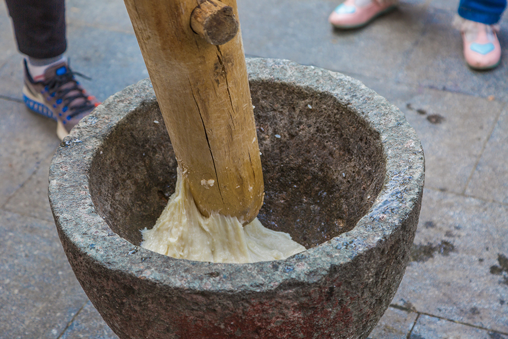 孩子和姑娘们在打麻糍这项运动上一点也不输给汉子~