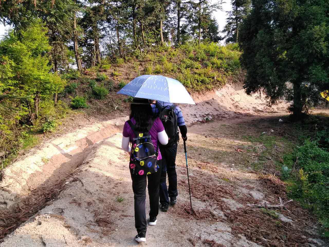 大家在这梦幻般的森林里嗨完片刻后,于是我们开始下山,遇到比较滑的路面时,我们会一同手牵手下去。