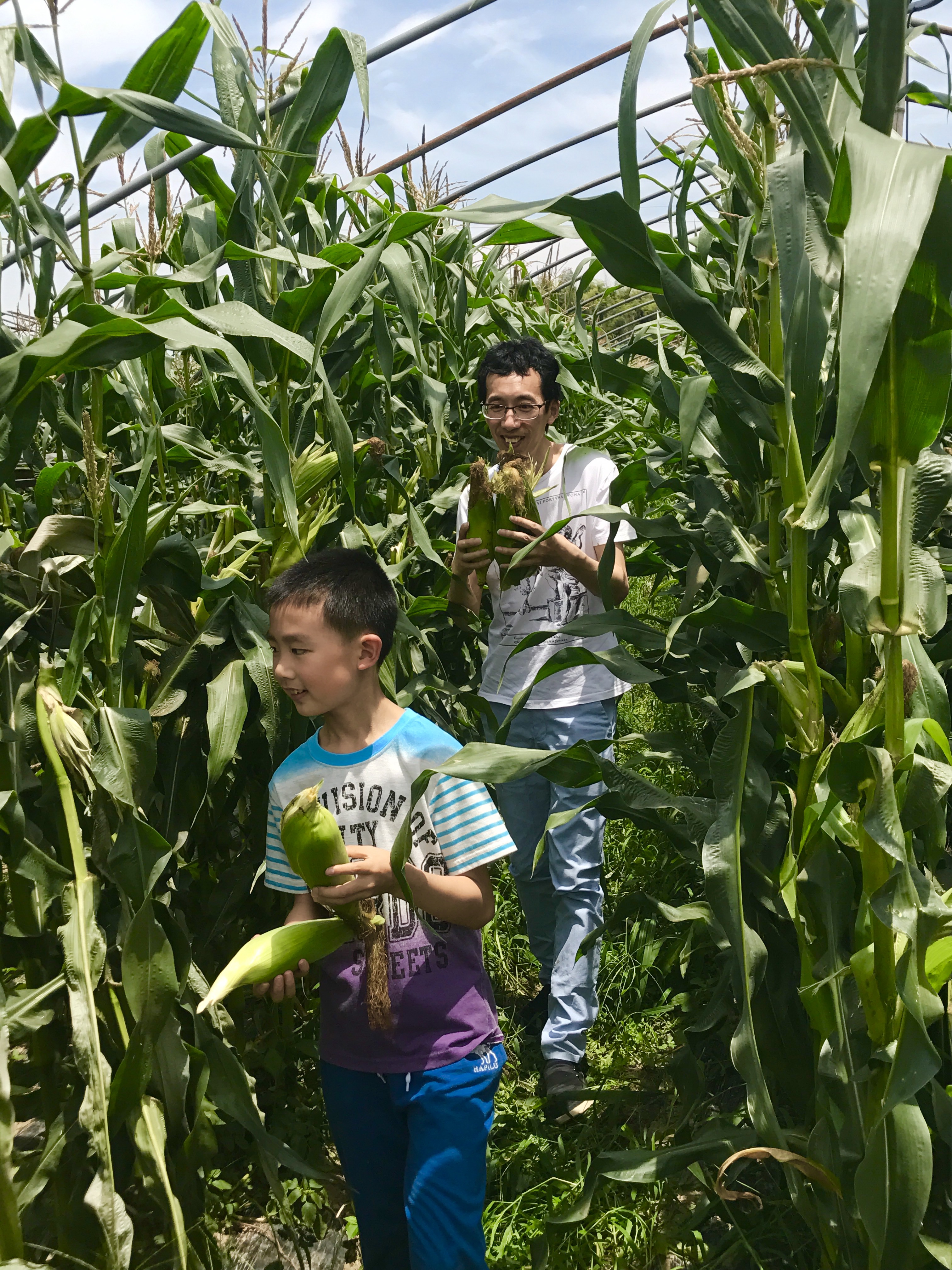 首先我们和宝贝们来到了果园,采摘了玲珑剔透的小番茄,然后去玉米地采摘了玉米,玉米要捏一捏,鼓起来饱满的才好。