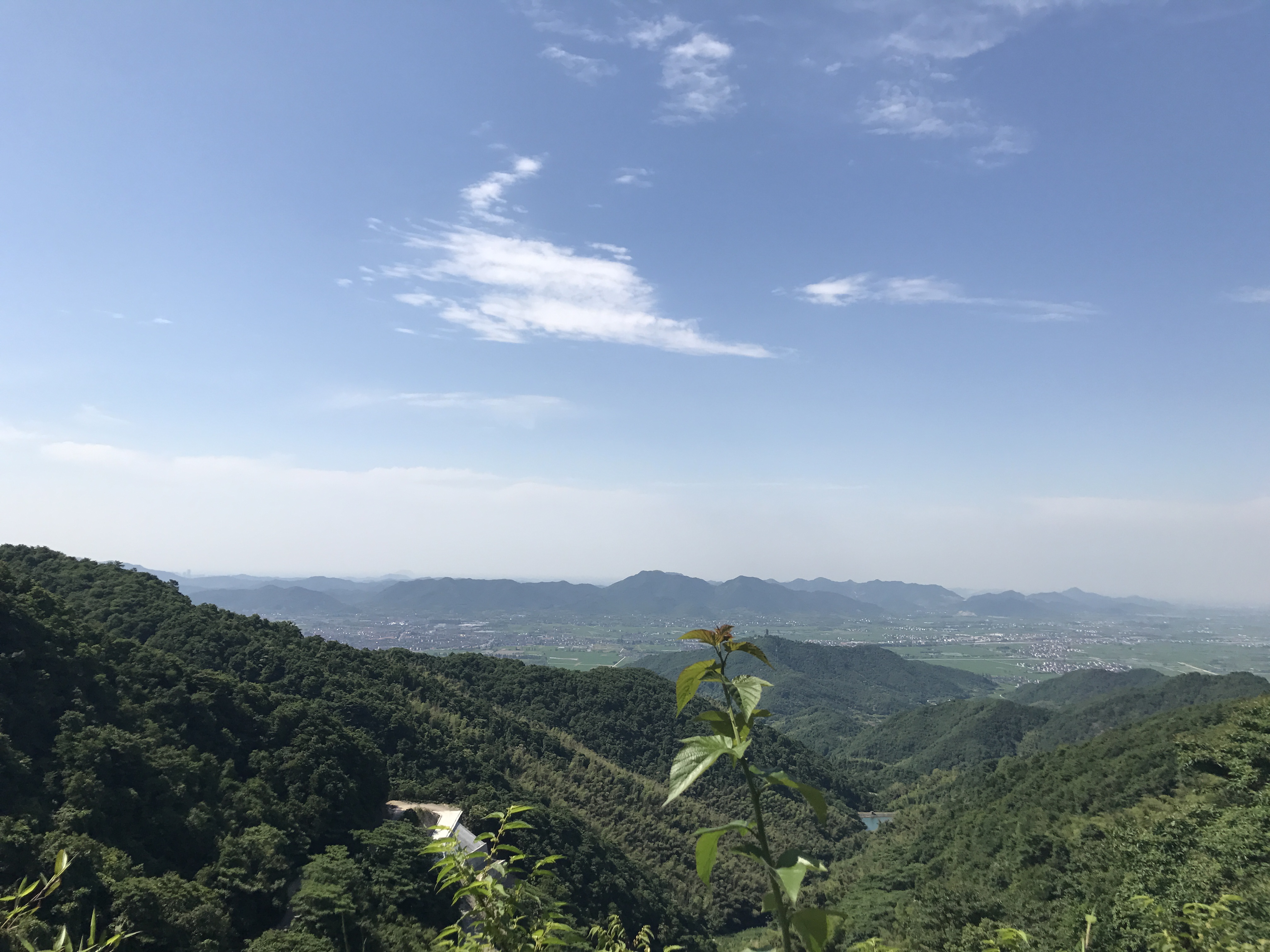登顶啦,可以看到山野间密密麻麻的房子,青山绿湖清泉,还有蓝蓝的天空和云儿。