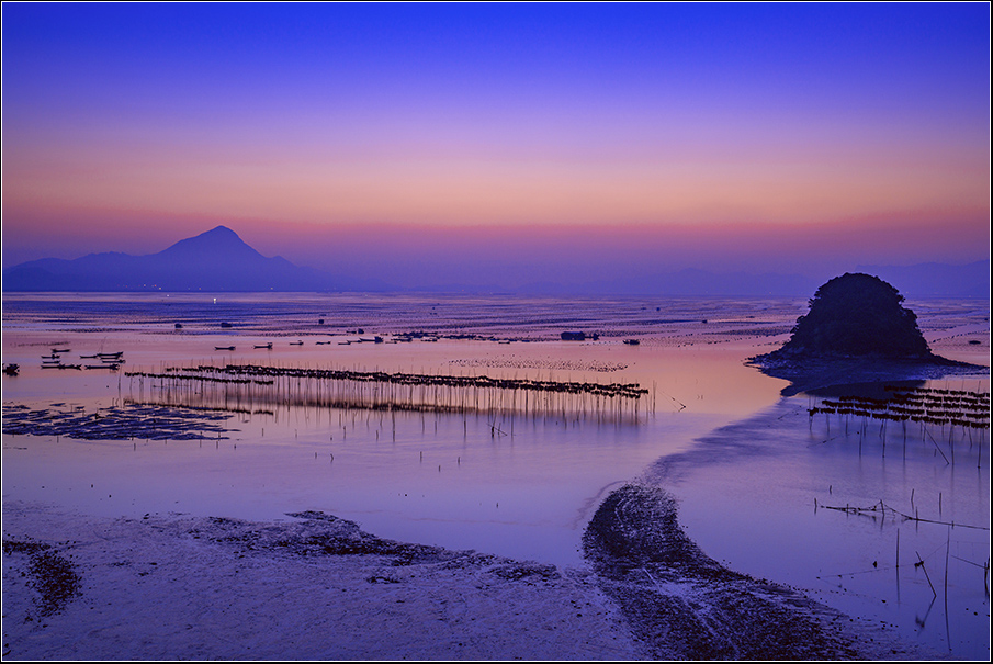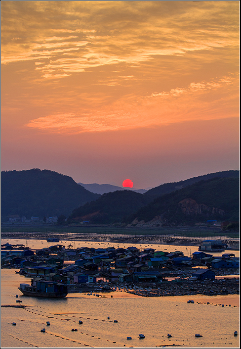 那天的海上日出实在是太美好了,至今难忘。原以为喷薄而出的旭日会造成照片的光比过大,还念叨着究竟是加渐变呢,还是包围曝光呢,还是HDR