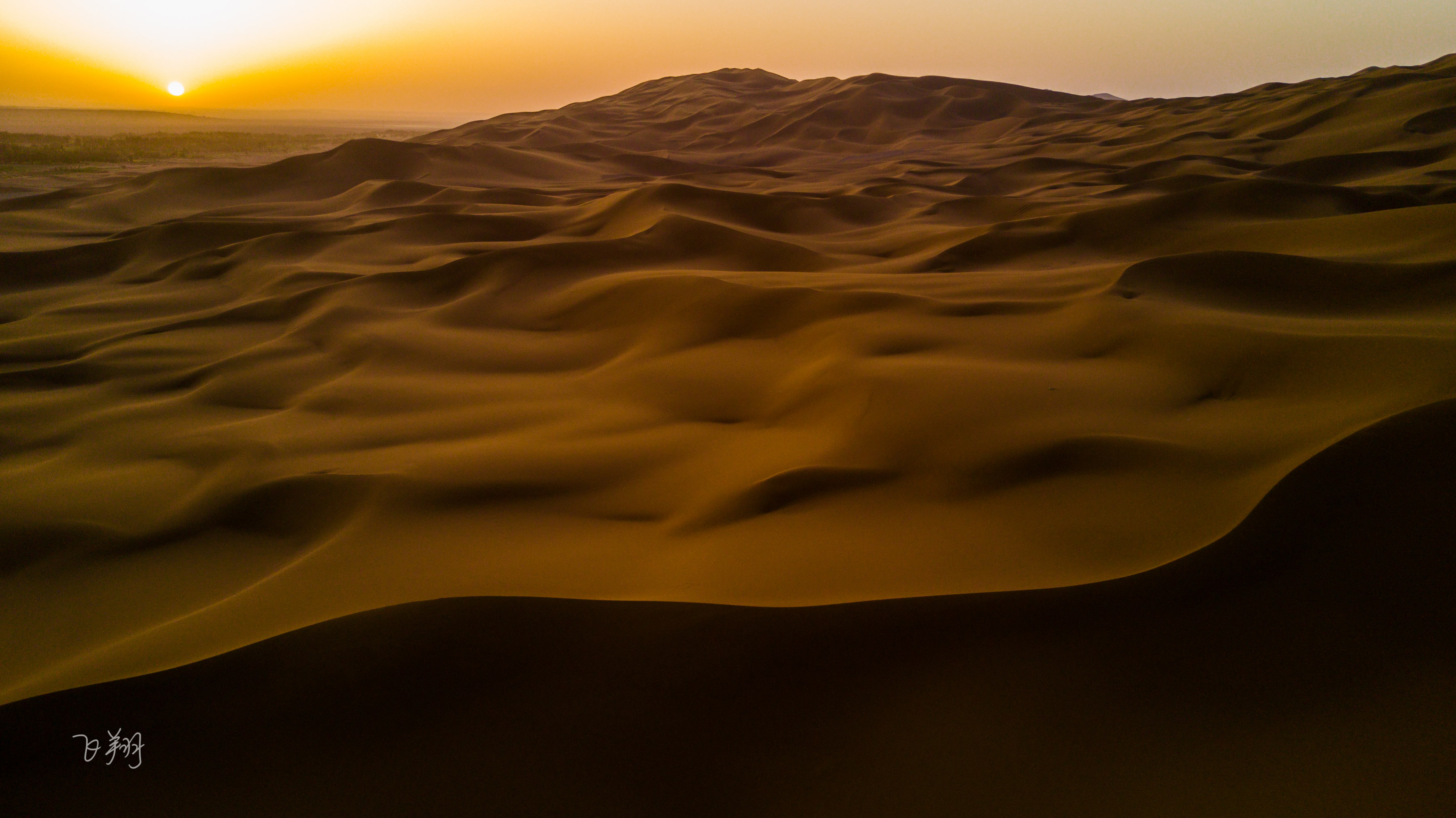 库木塔格沙漠,距离城市最近的沙漠,它的边缘,已经迈向城市,千百年来,却未曾前进一步。沙漠的曲线,勾勒出了风的形状。等待一个日出,见证第一束金黄的曙光。