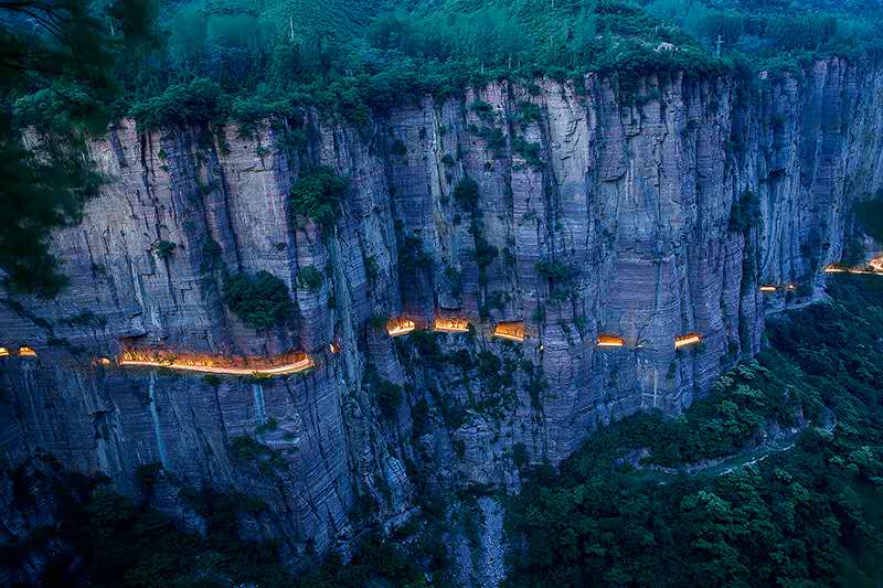 下图背后的故事,这张照片的拍摄时间恰巧是晚饭时间,夜幕降临之前。当时,我喊淮河和正道两位大师回农家吃饭,大师们说:附近随便吃一点面条好了哇,不能错过这个夜幕下的车轨。然后我回去吃饭了,大师们吃着寡淡的面条,拍下这张令人震撼的郭亮洞车轨!。。。。