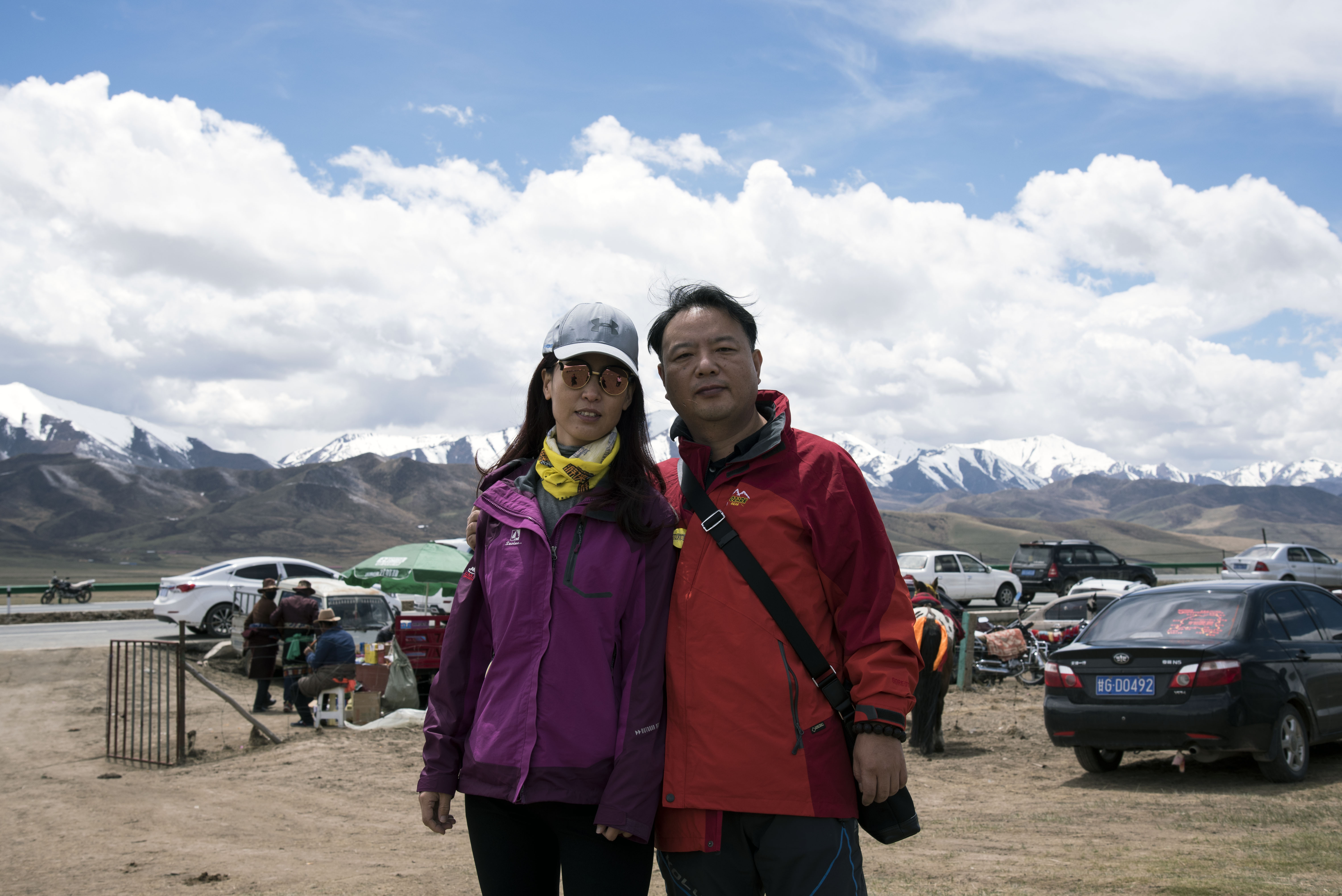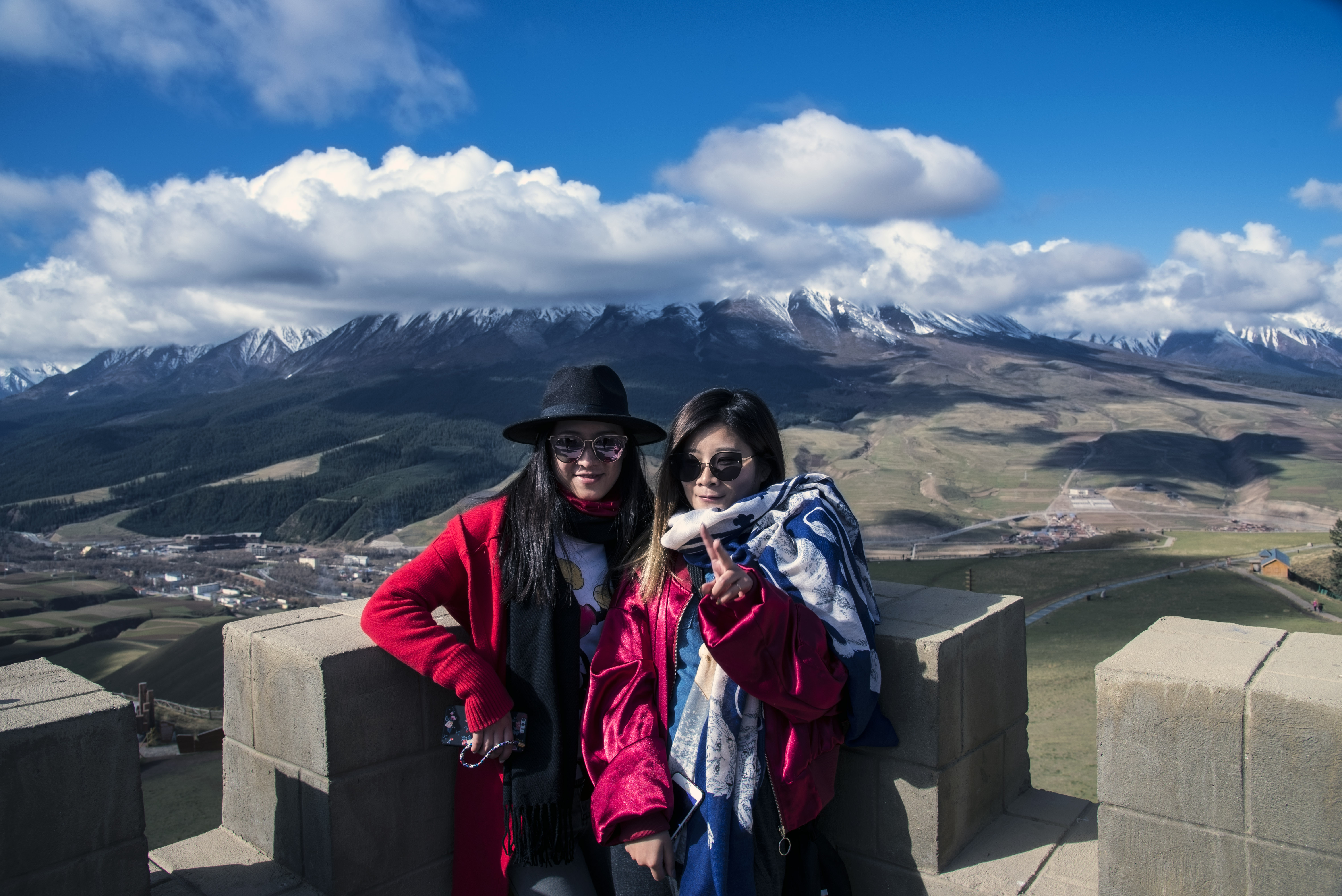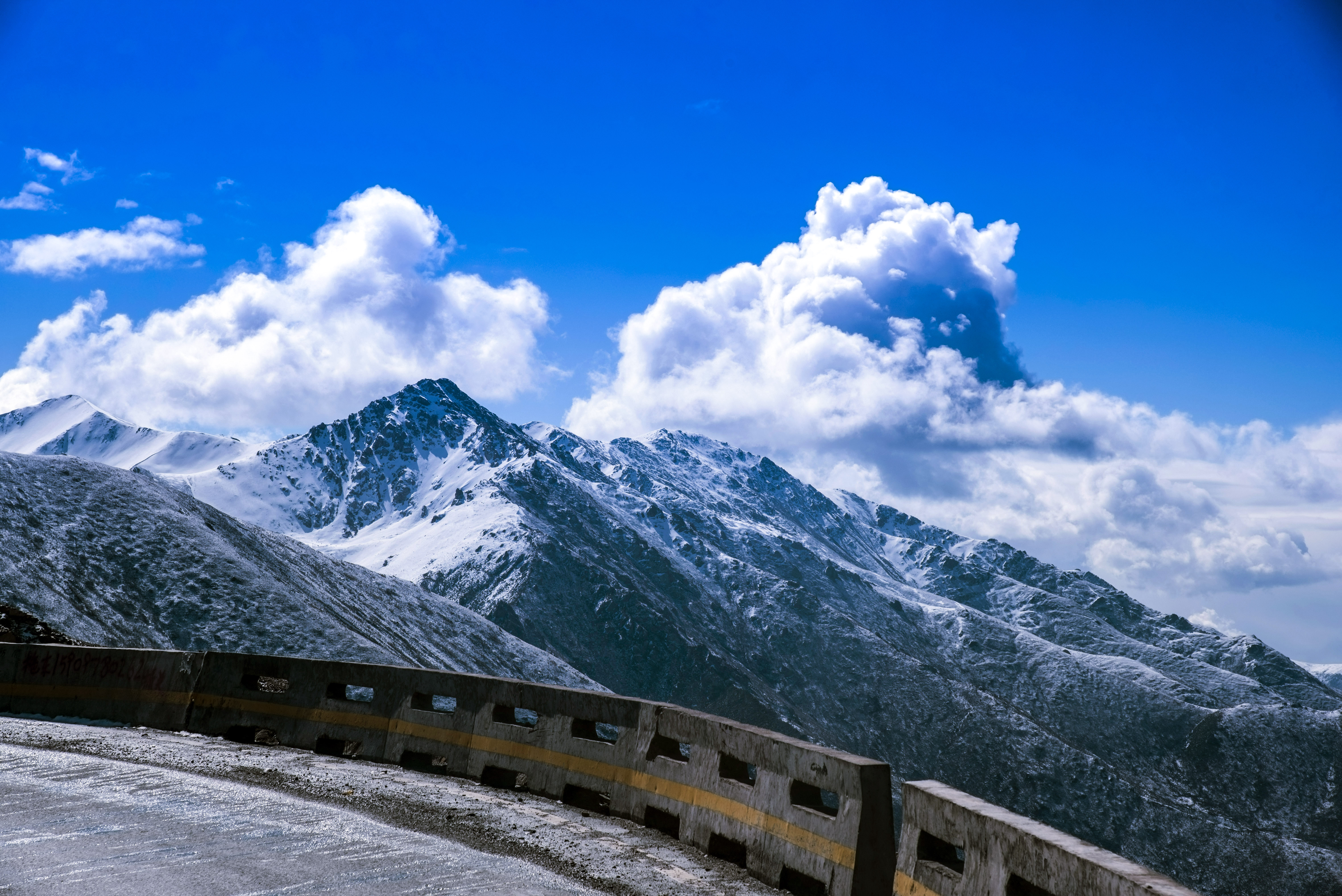 停车在达坂山观景台上,远眺美丽的岗石卡雪峰,若是夏天,这里还会有一望无际的油菜花海