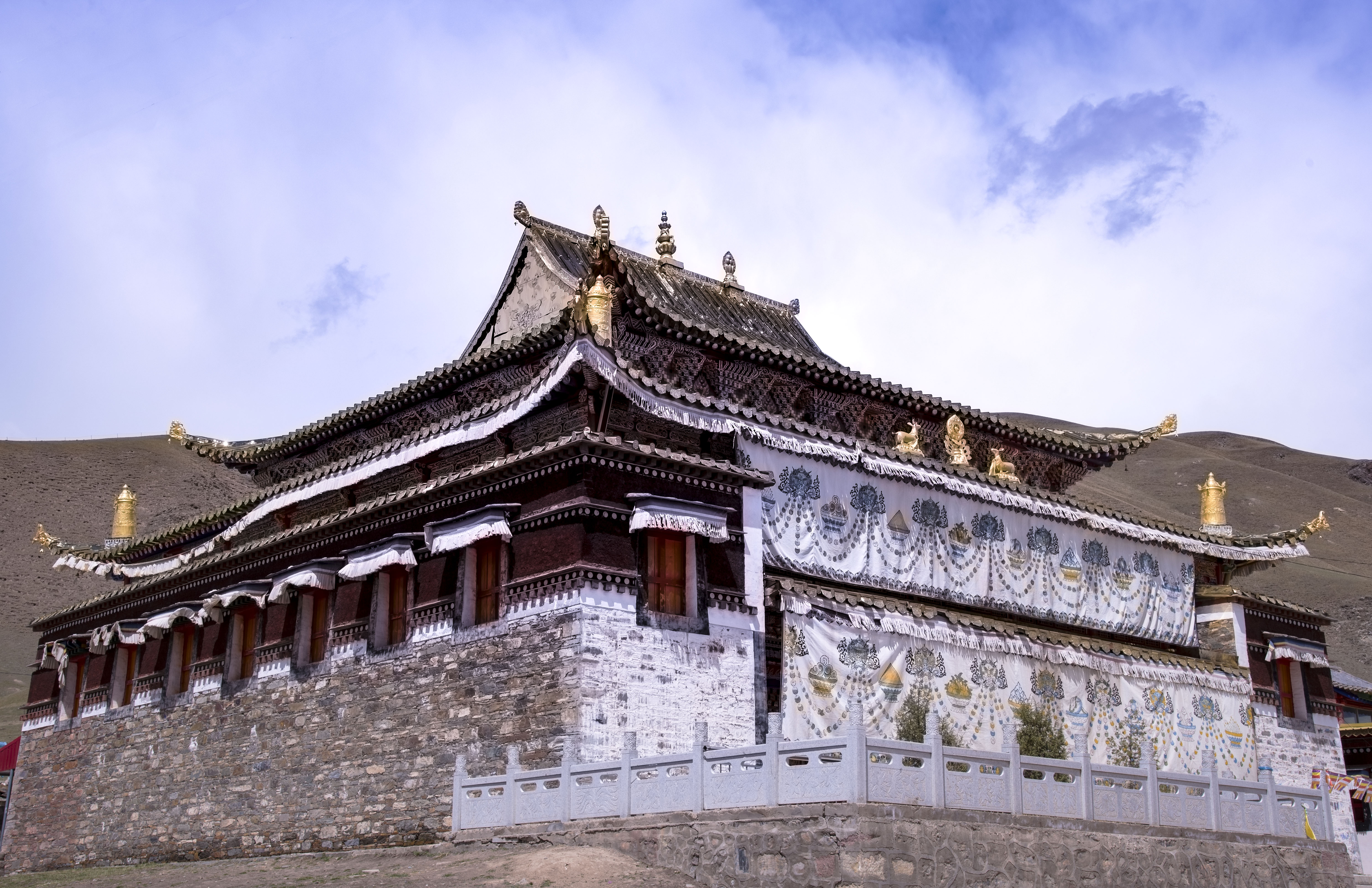 阿柔大寺,藏语称“阿柔县喜宏法洲”。位于祁连县治八宝东南21公里处大坂乡贡白加龙。