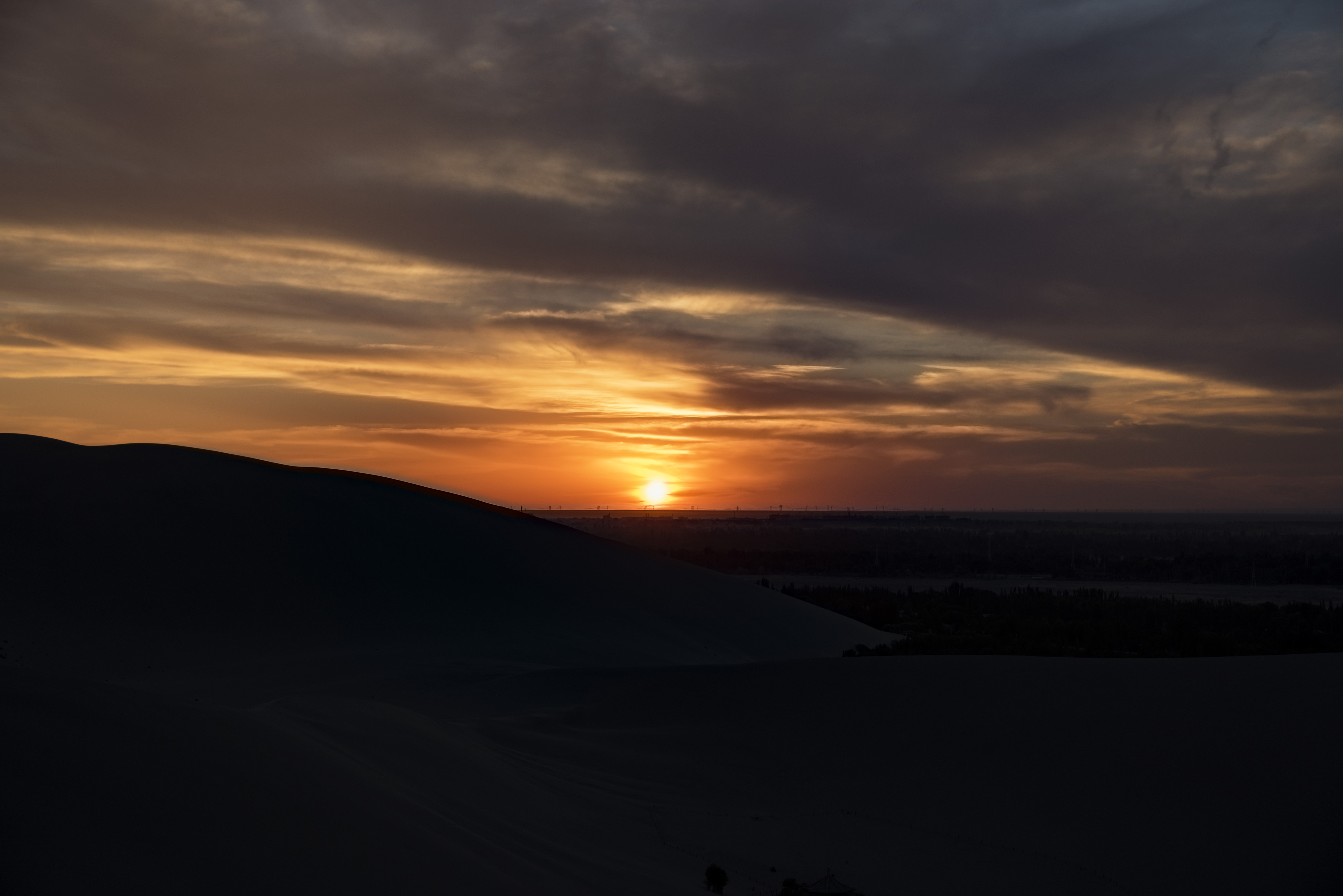夕阳西下,日落鸣沙