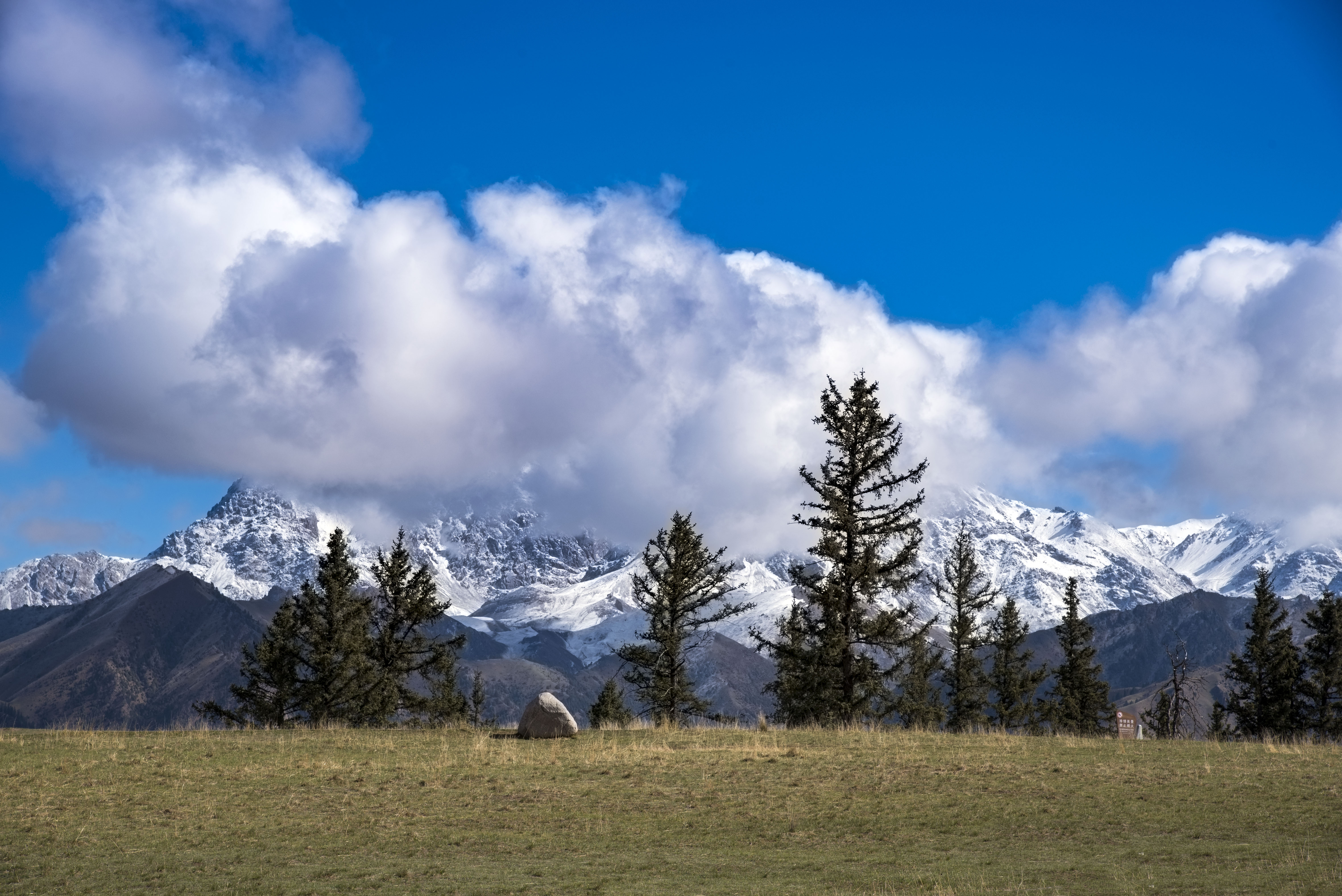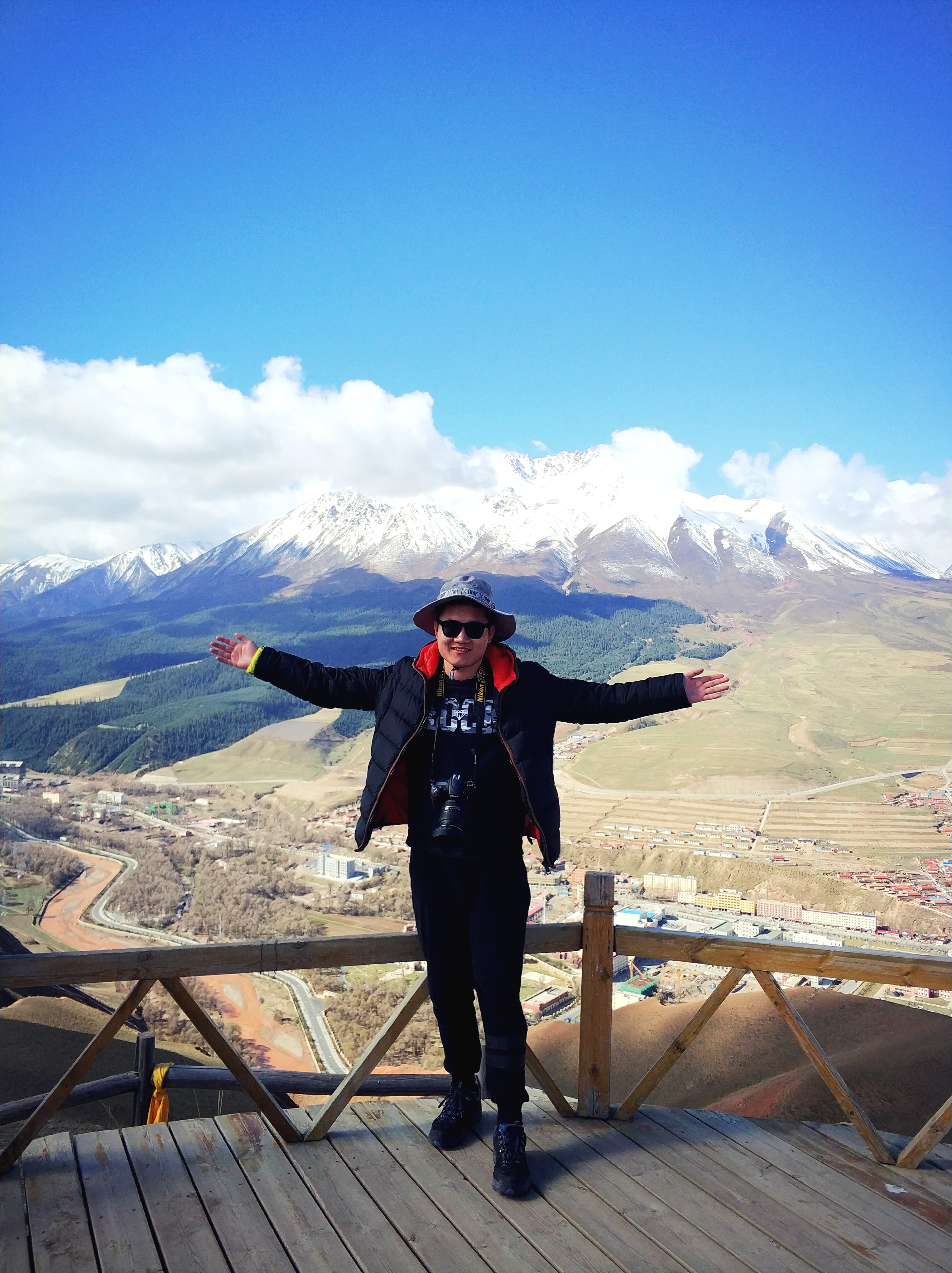 前一天晚上刚下过雪,却让我们赶上了一个大晴天,白雪盖地一直蔓延至雪线,连成一片苍茫的白色