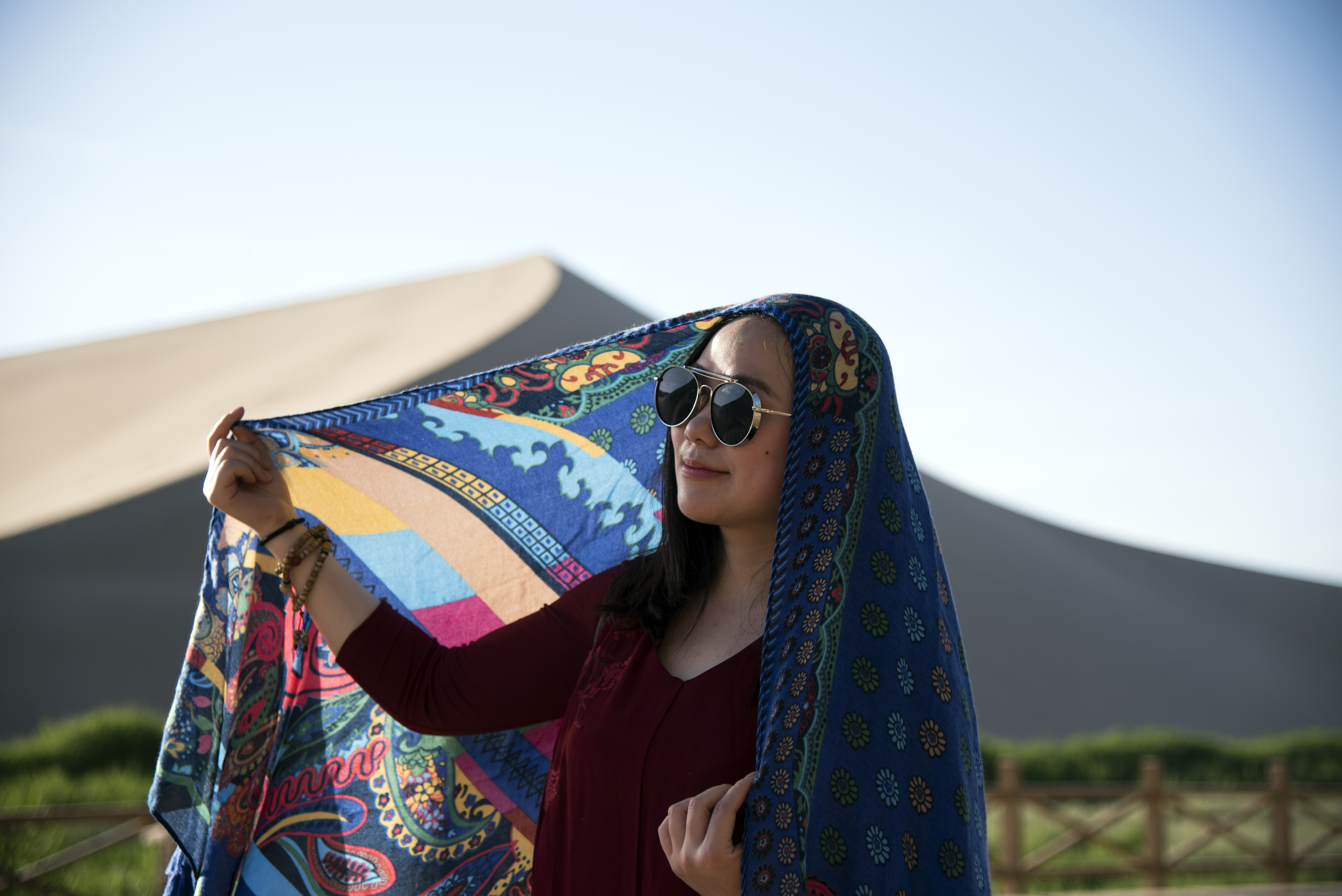 鸣沙山位于敦煌市南6公里的沙鸣山北麓,因沙动有声而得名。古称“沙角山”、“神沙山”。山由流沙积聚而成,东起莫高窟崖顶,西接党河水库,东西绵延40公里,南北宽约20公里。