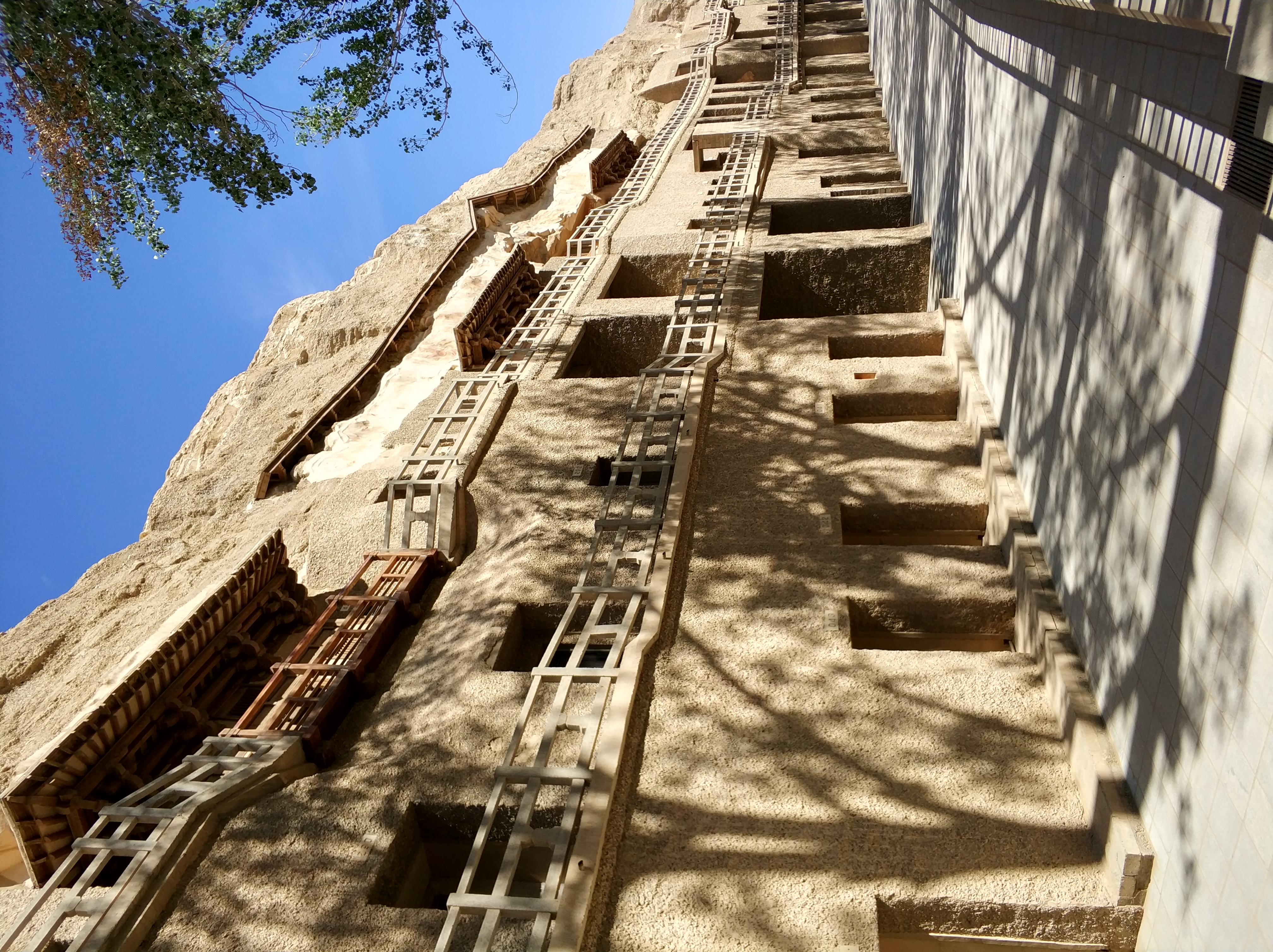莫高窟,俗称千佛洞,坐落在河西走廊西端的敦煌。始建于十六国的前秦时期,历经十六国、北朝、隋、唐、五代、西夏、元等历代的兴建,形成巨大的规模,有洞窟735个,壁画4.5万平方米、泥质彩塑2415尊,是世界上现存规模最大、内容最丰富的佛教艺术地。与山西大同云冈石窟、河南洛阳龙门石窟、甘肃天水麦积山石窟并称为中国四大石窟。