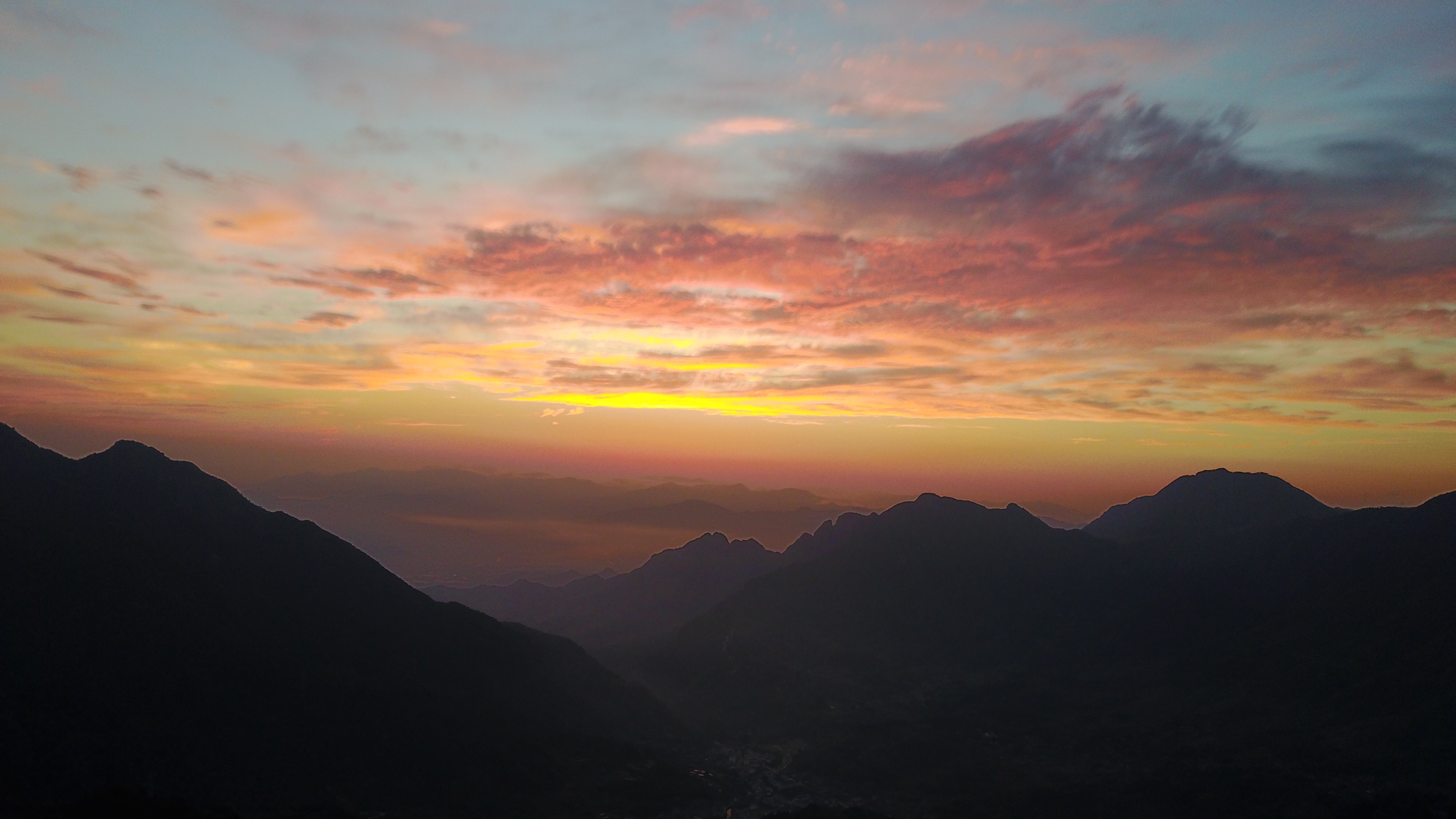 至观景台正好太阳渐渐从山的另一方冒出一点点晨曦的光芒。