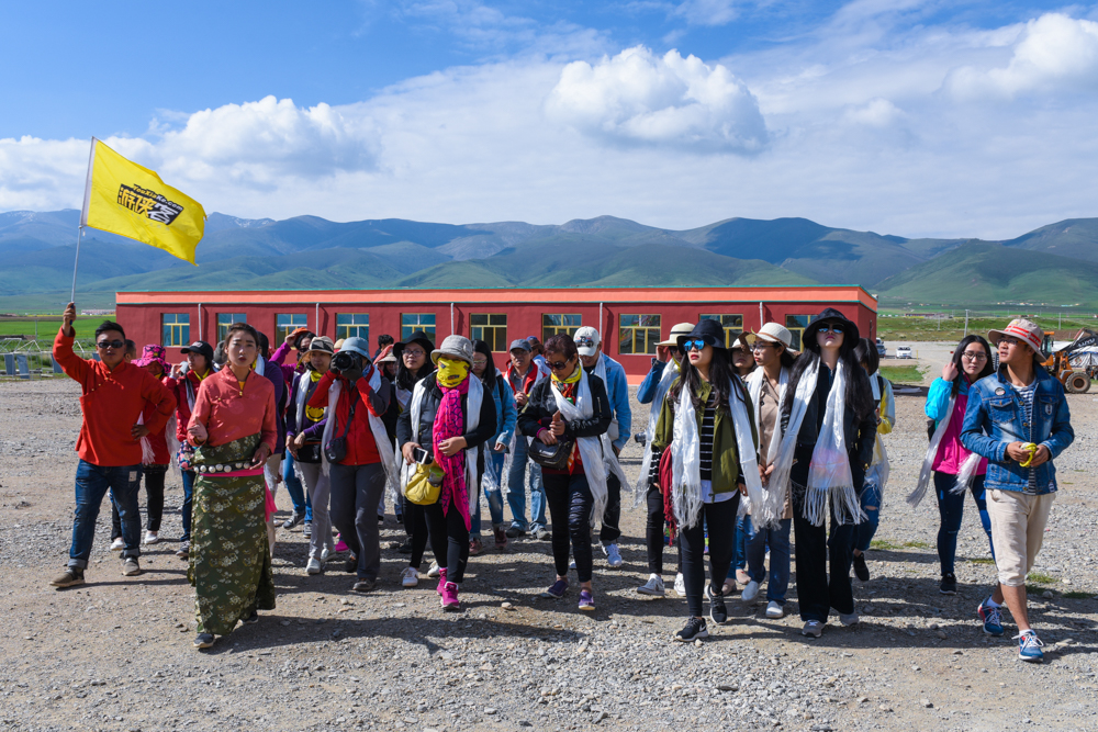 (游侠们齐聚在卓尔山风景区,后面就是神山阿咪东索)