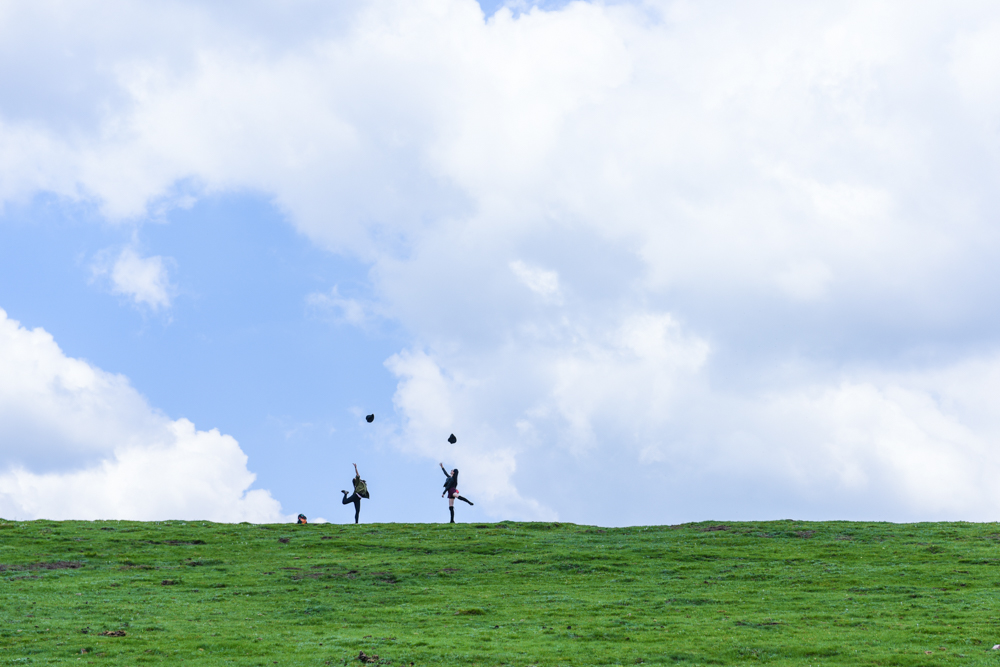 (身处祁连山草原,将帽子抛向近在咫尺的云中)