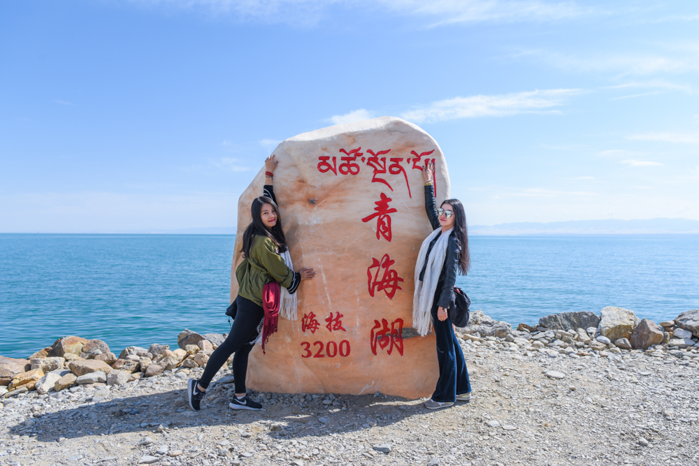 (游侠们在青海湖边)