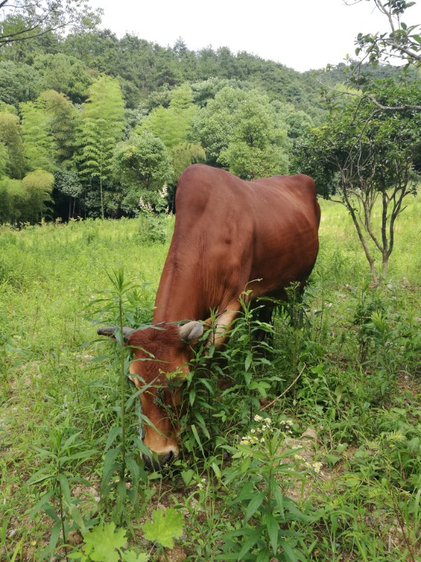 路边悠闲吃草的大黄牛也是一道不错的风景哦
