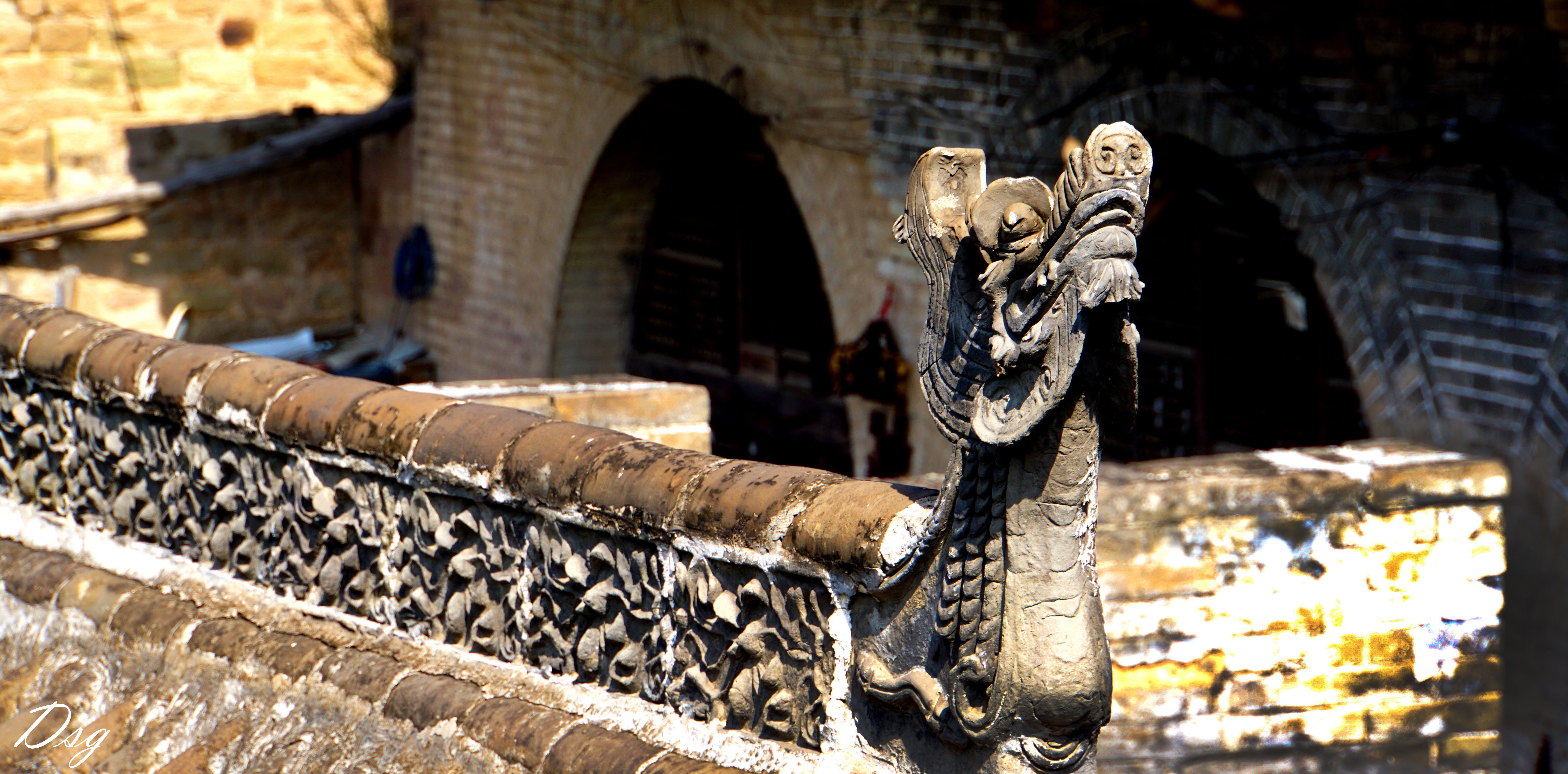 碛口镇还有一个西湾村,这也是个窑洞楼房村。不过靠近镇街,所以窑洞建筑更多地运用砖木,也讲究一些。你看那龙头龙身屋脊,有多精致!有一个三层窑洞大院,第三层用砖砌了两小间,称为小姐房。那个时候,老财想要让女儿们远离凡尘呢!