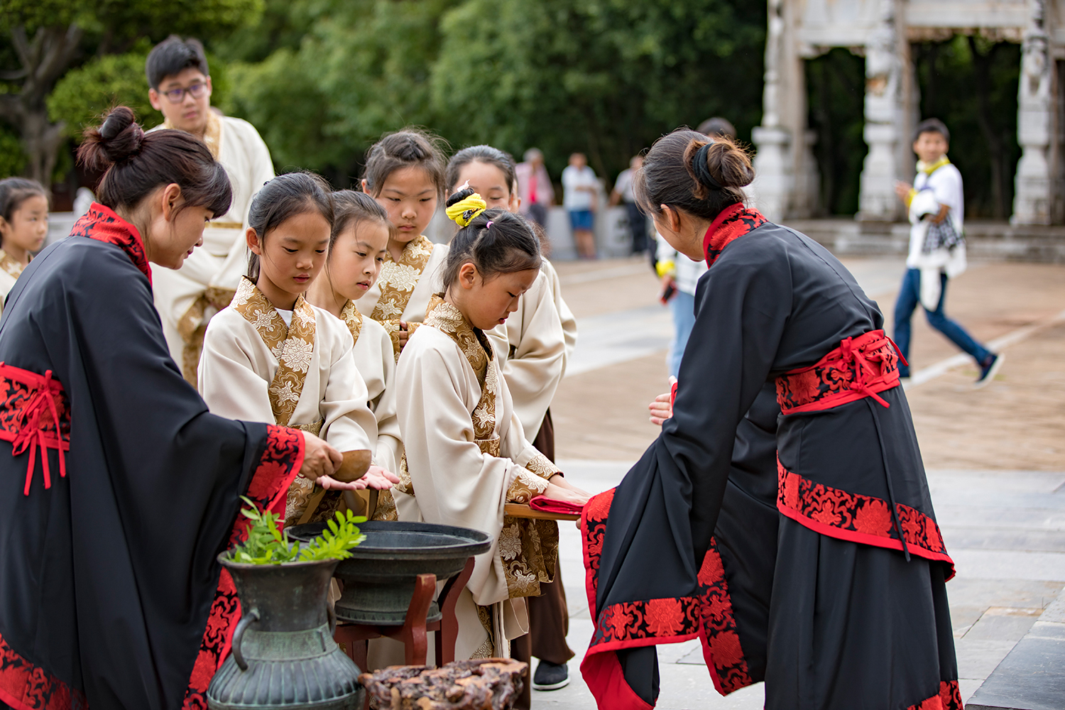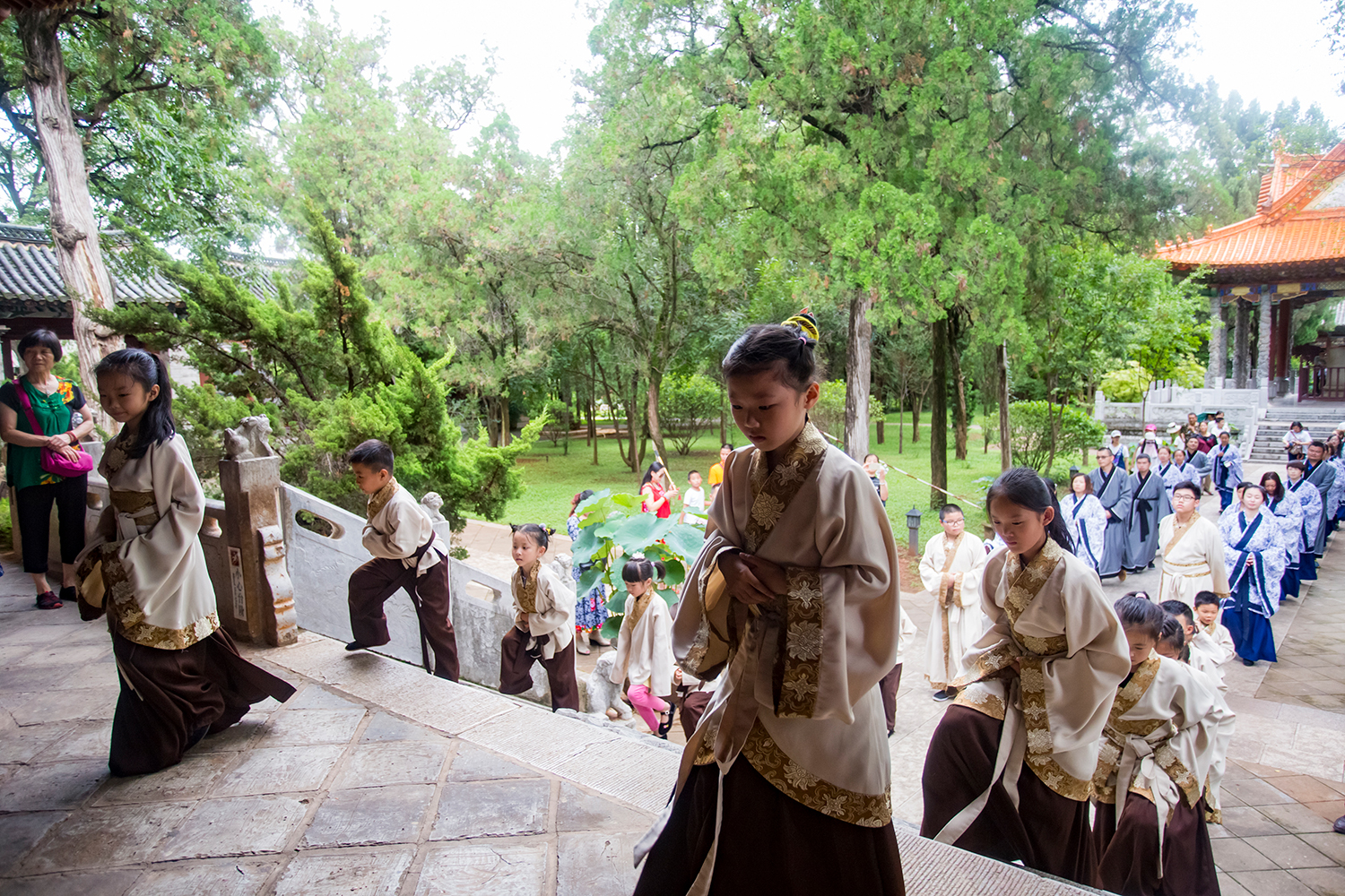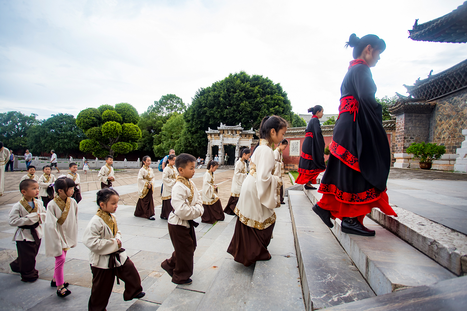 下午,我们抵达建水,建水是一个很有历史的文化名城,这里有全国出名的建水文庙。爸爸妈妈和小游侠们换好服装,在文庙里参加了“儒家三礼”。儒家学派自古就很注重礼仪。 因为我们团里的小游侠都是5-8岁居多,所以我们参加的是成童礼。