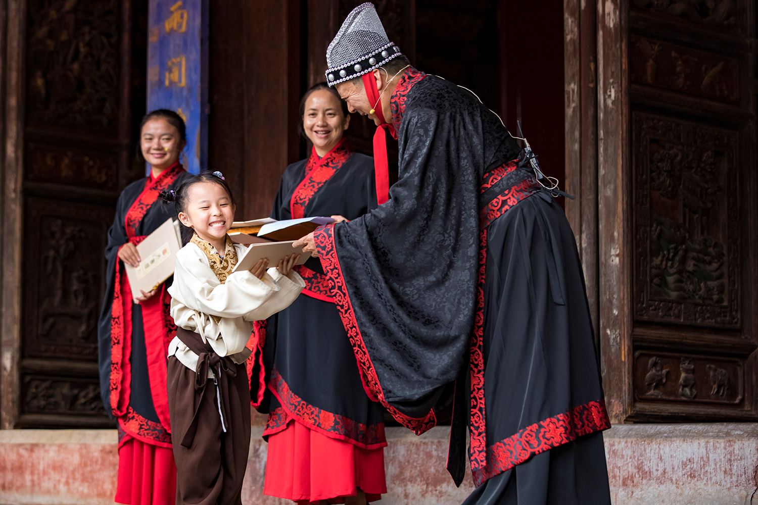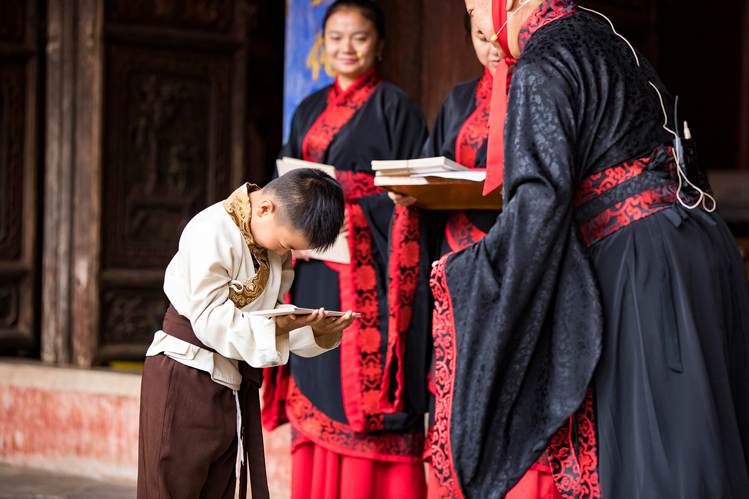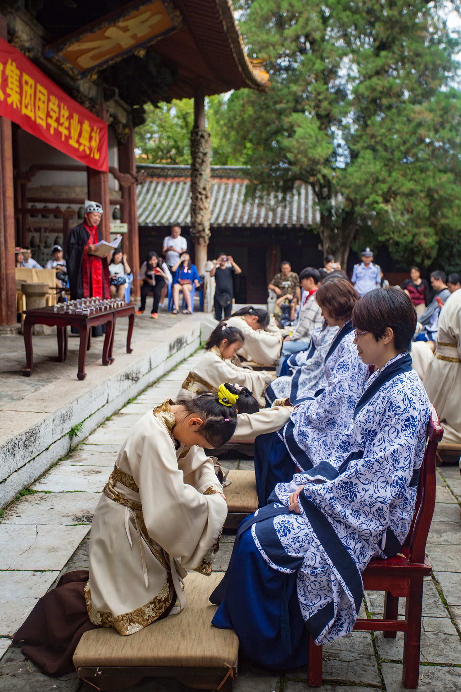 下午,我们抵达建水,建水是一个很有历史的文化名城,这里有全国出名的建水文庙。爸爸妈妈和小游侠们换好服装,在文庙里参加了“儒家三礼”。儒家学派自古就很注重礼仪。 因为我们团里的小游侠都是5-8岁居多,所以我们参加的是成童礼。