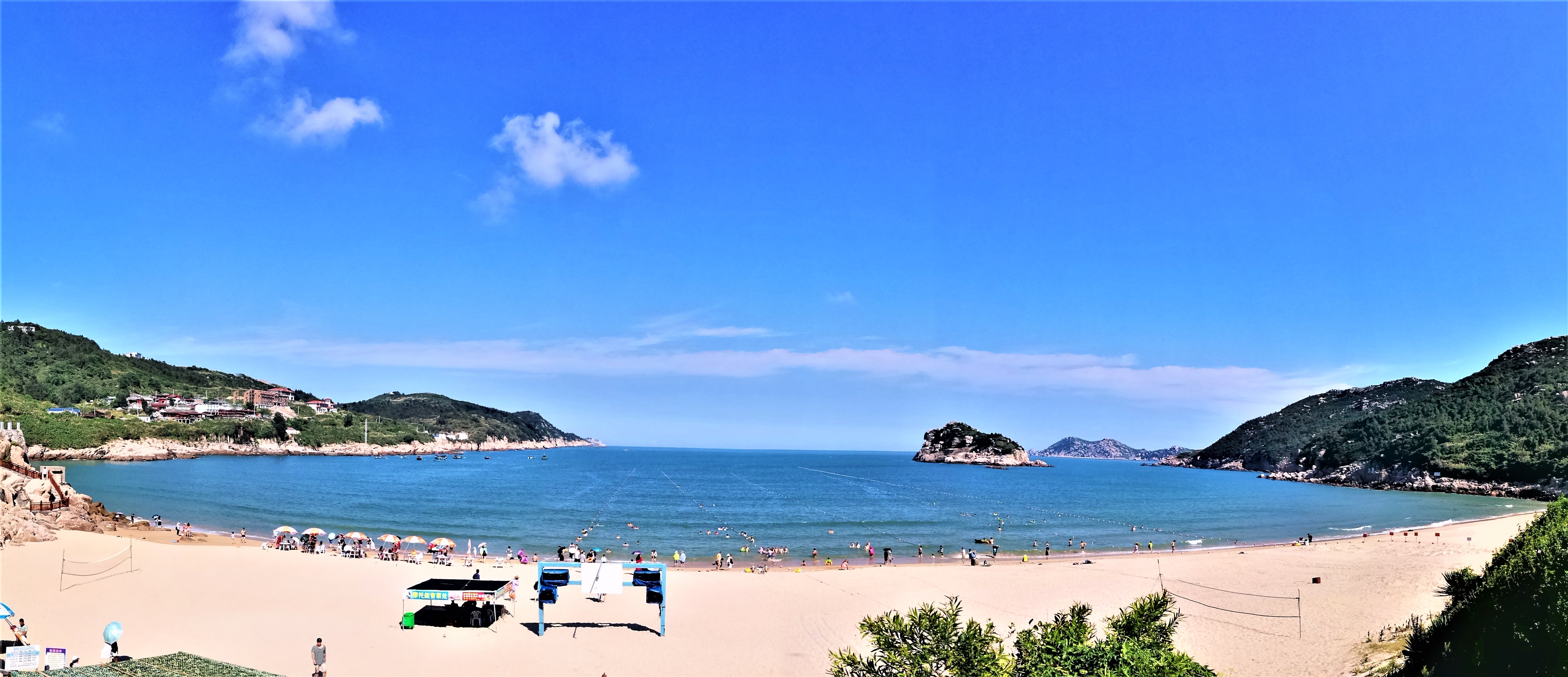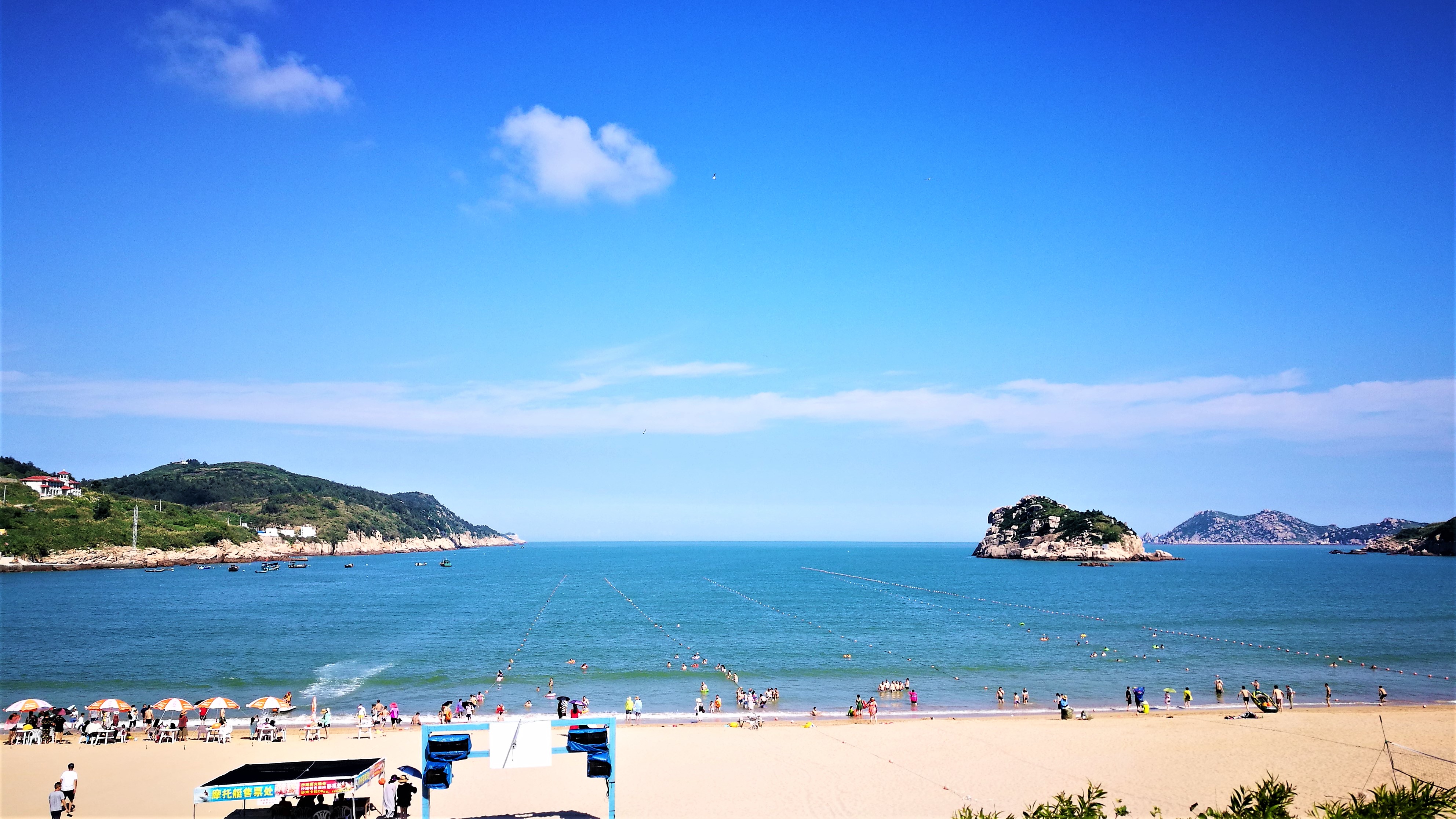 经过两小时的船程,终于到达南麂岛。刚下船,就被眼前的美景惊呆了:天,是蓝的;水,也是蓝的;云,是白的;山,是绿的;风,是凉爽的,空气,是清新的。