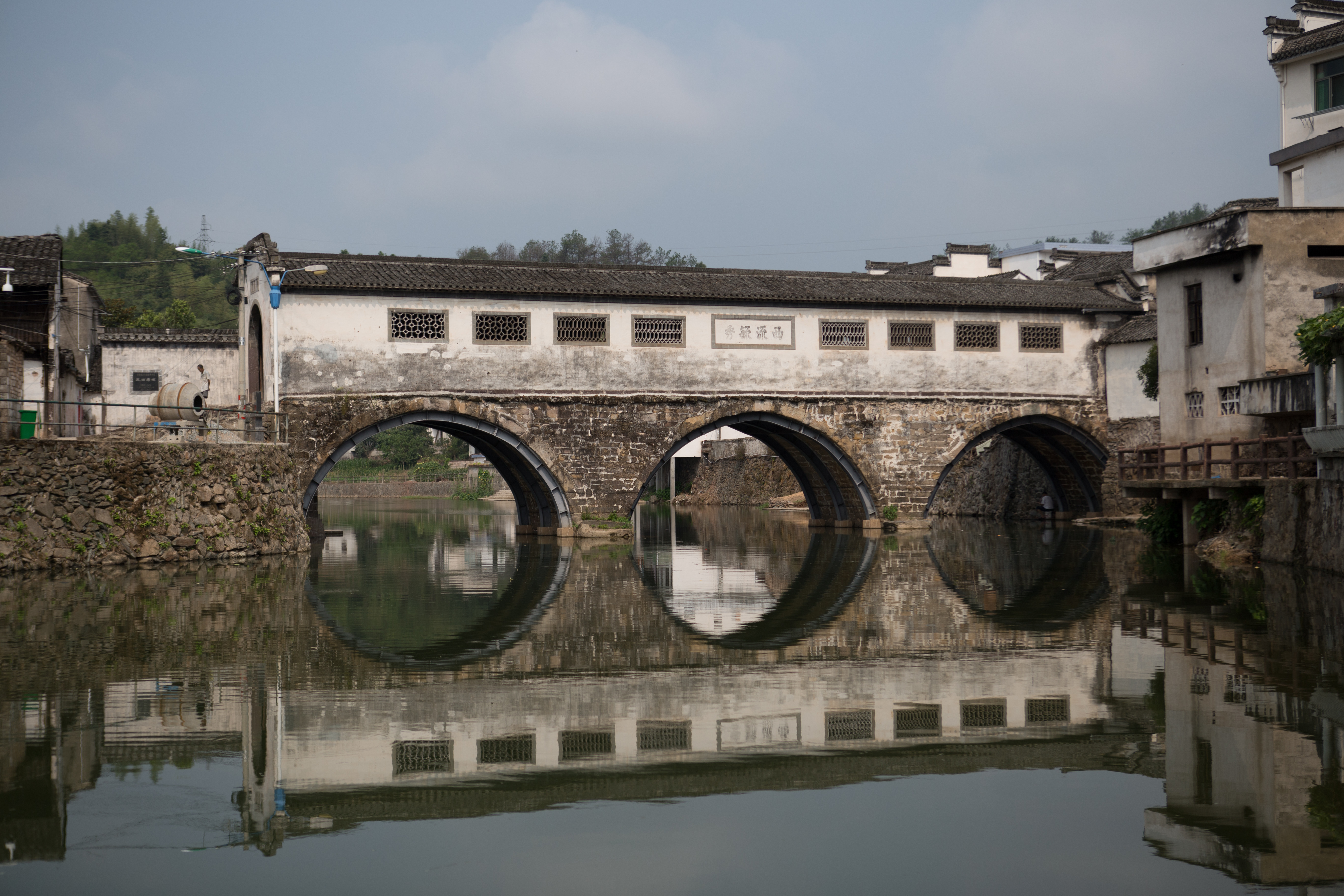 北岸廊桥又名风雨廊桥。建于徽州歙县北岸棉溪河上的北岸廊桥大概是徽州廊桥中造型最为别致也最为壮观的一座,建于清代中叶时期。该廊桥系3孔石桥,桥廊为砖木结构,高约5米。是黄山百佳摄影点之一