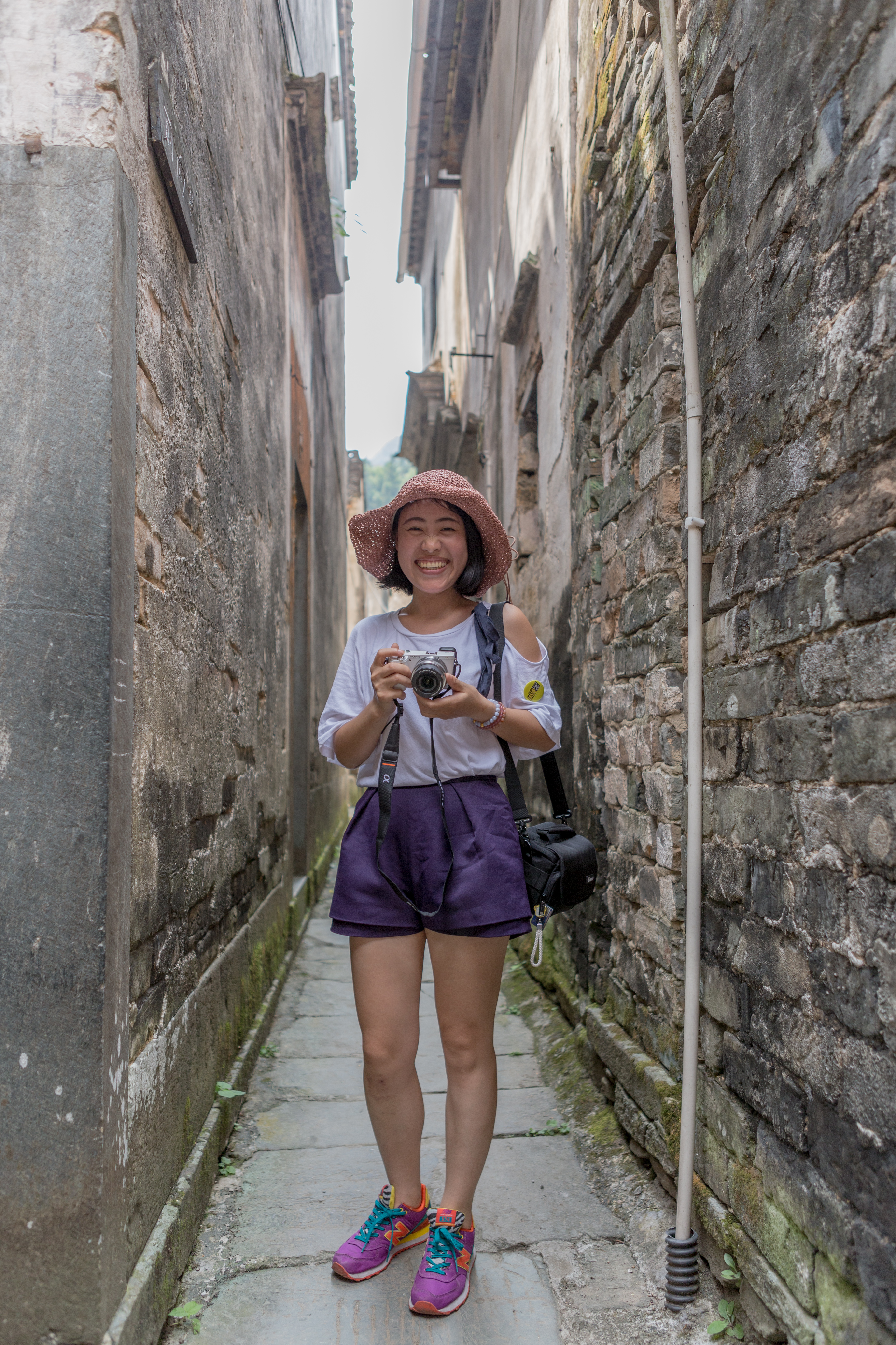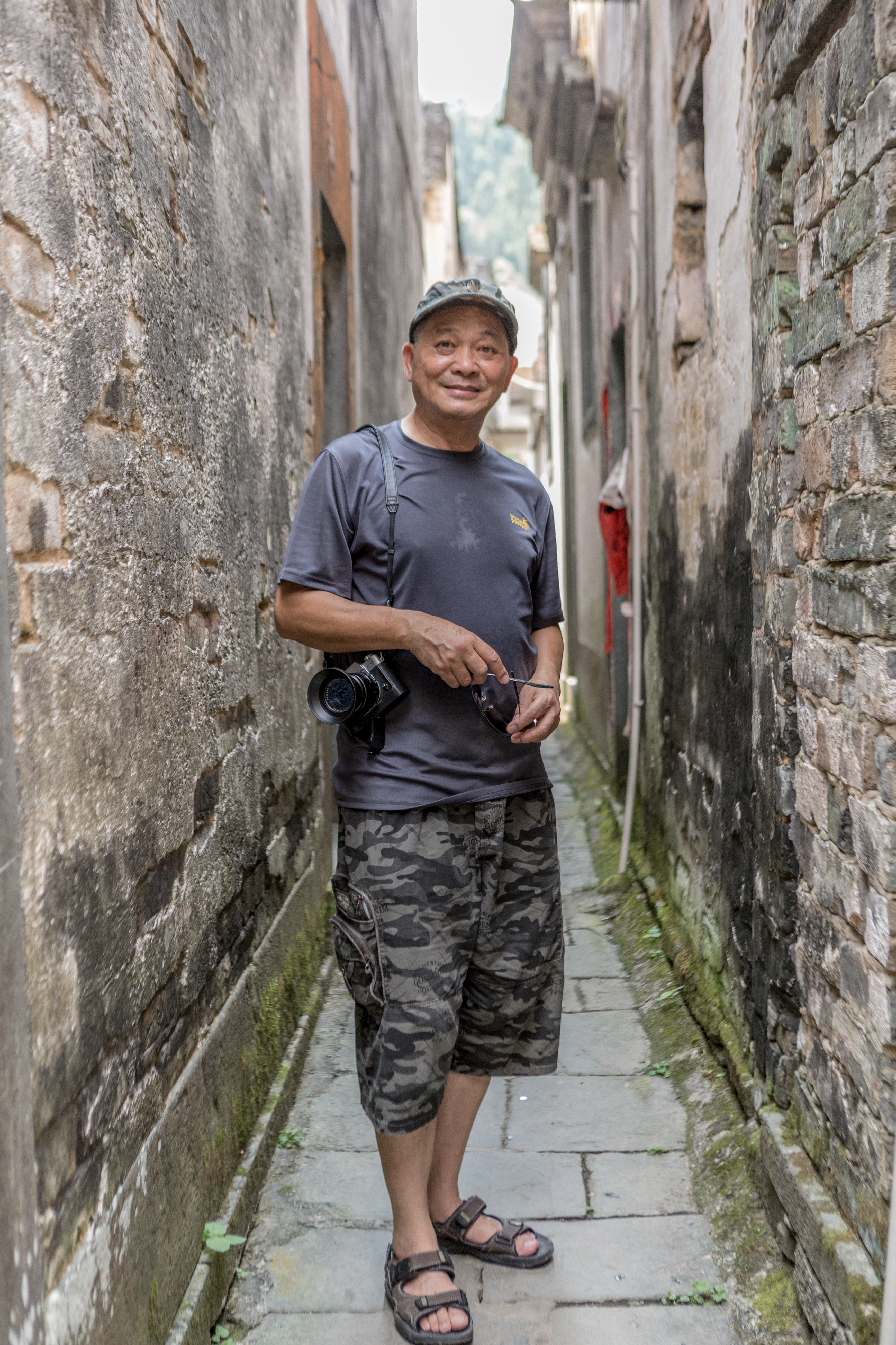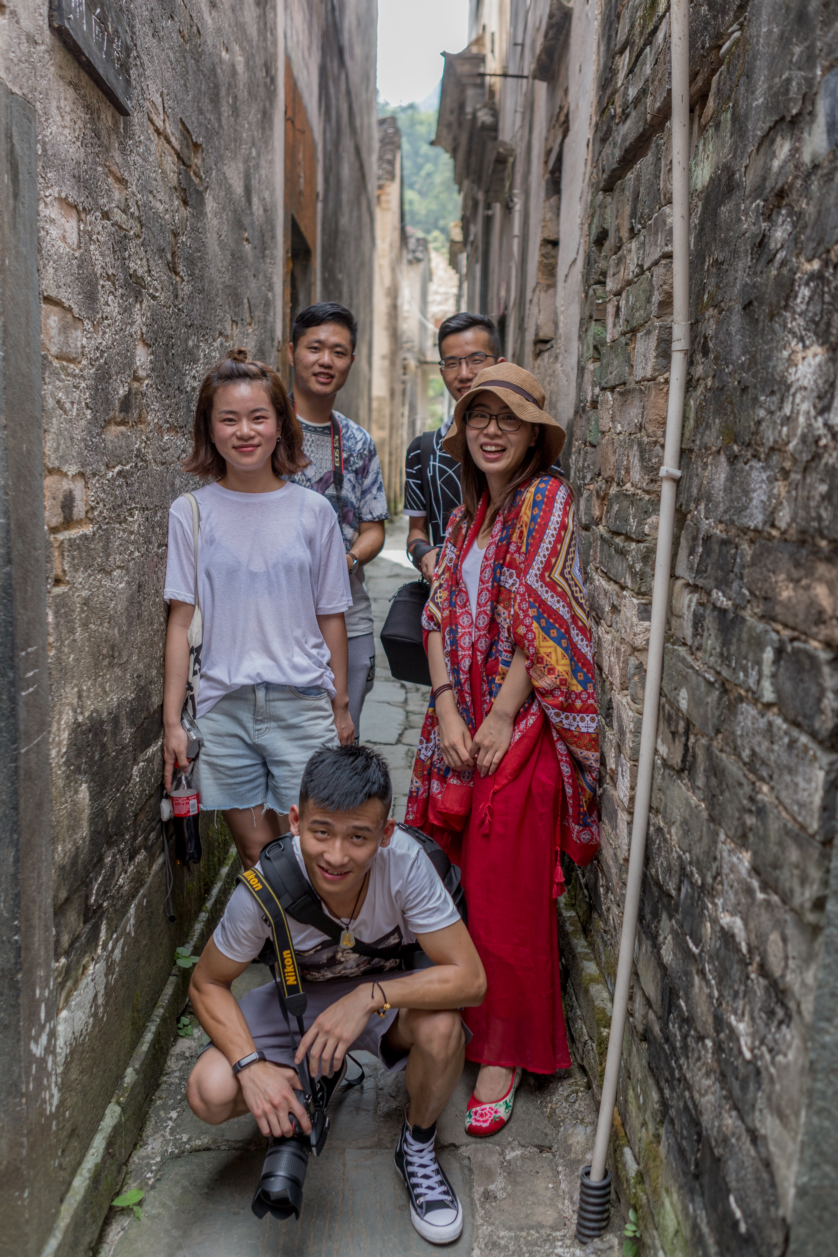 约三个小时我们到达石潭村,午饭后,我们前往石潭老街,从石潭大桥廊亭上方镌刻“石潭老街”算起,村中街道两旁老房子分别悬挂了“糕点铺”、“茶叶铺”、“竹器铺”、“农家茶”、“剃头铺”、“布鞋铺”、“古玩店”、“徽州盆景”等二十来个形形色色的复古招牌,加之大街上的两座古老祠堂——叙伦堂和春晖堂,让游客们感受到古色古香的石潭村悠久的历史。只有正午的太阳才能透进窄窄的巷子,拍摄到光与影的交融